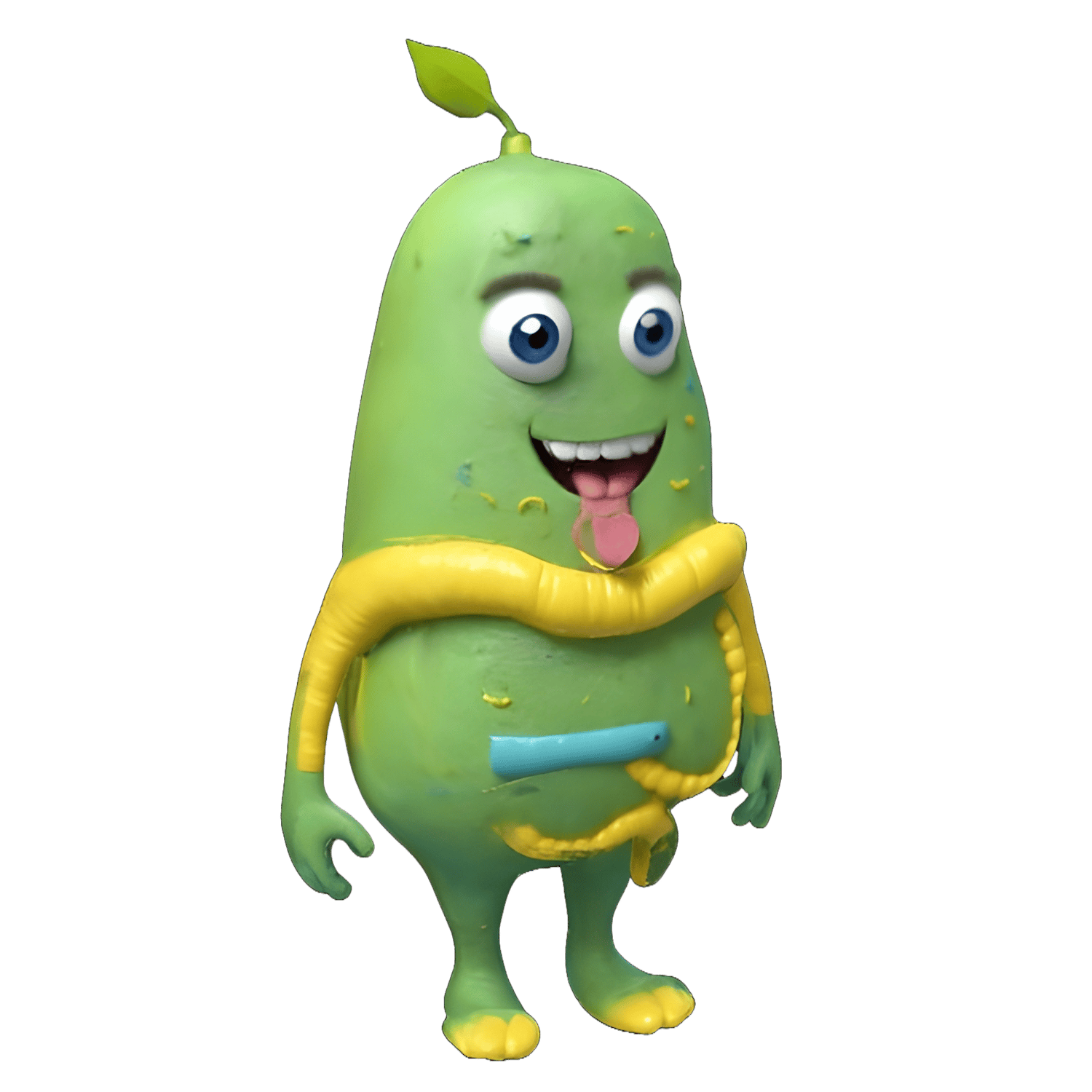 - Goofy Pear Creature: A cheerful, quirky pear-shaped character with expressive eyes and a playful demeanor.