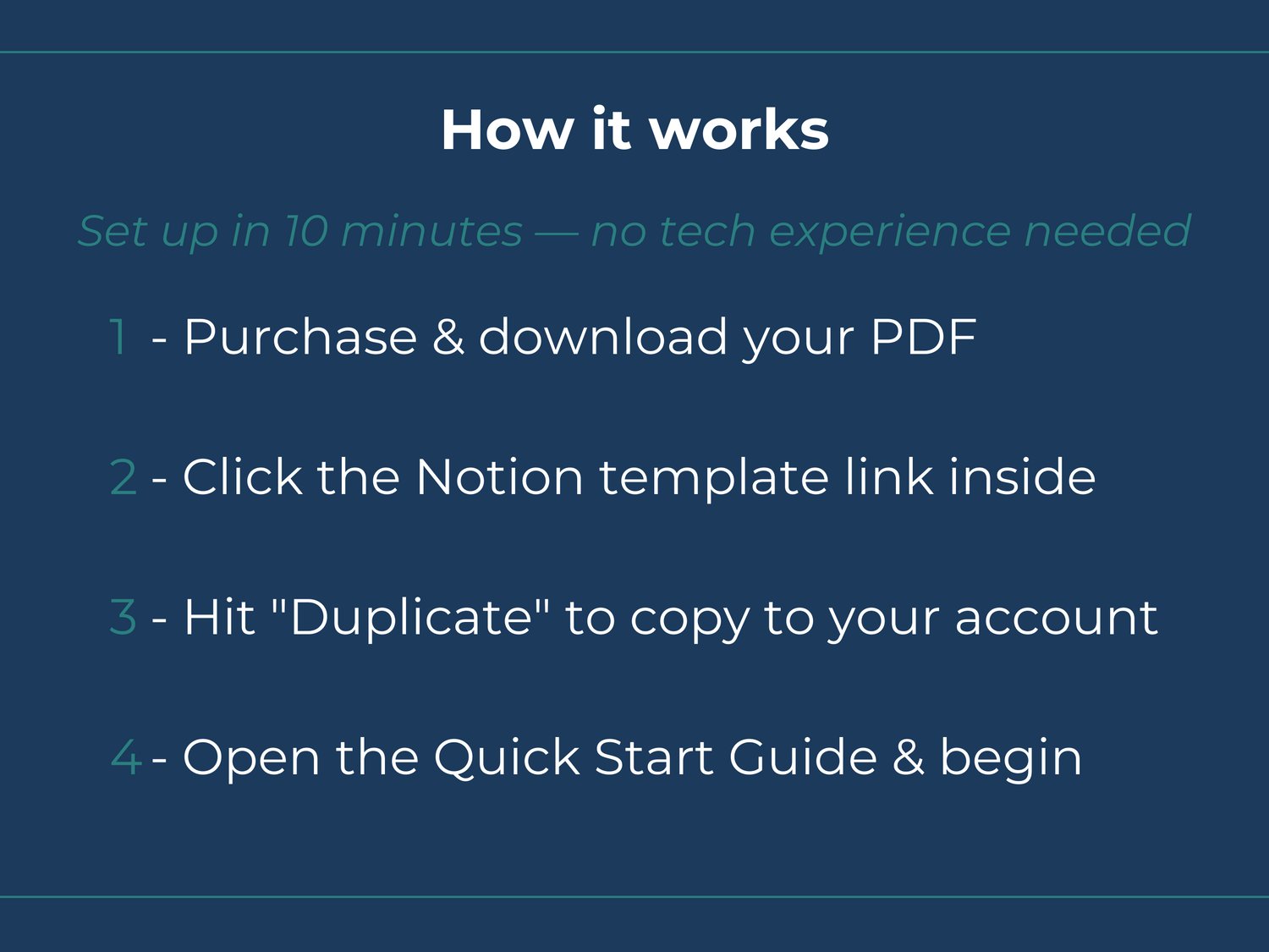 Up and running in 10 minutes. 7-step setup guide plus FAQs — perfect for first-time Notion users.