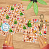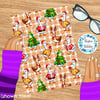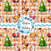 Silly geese all dressed up in Christmas costumes, including Santa Claus, reindeer, Xmas trees and gingerbread cookies.