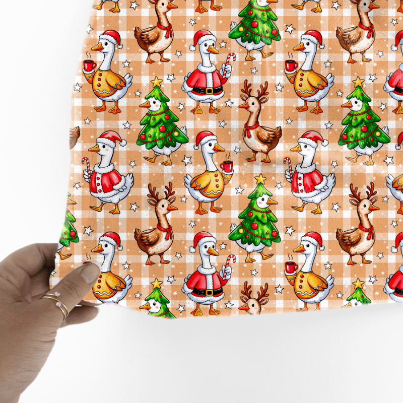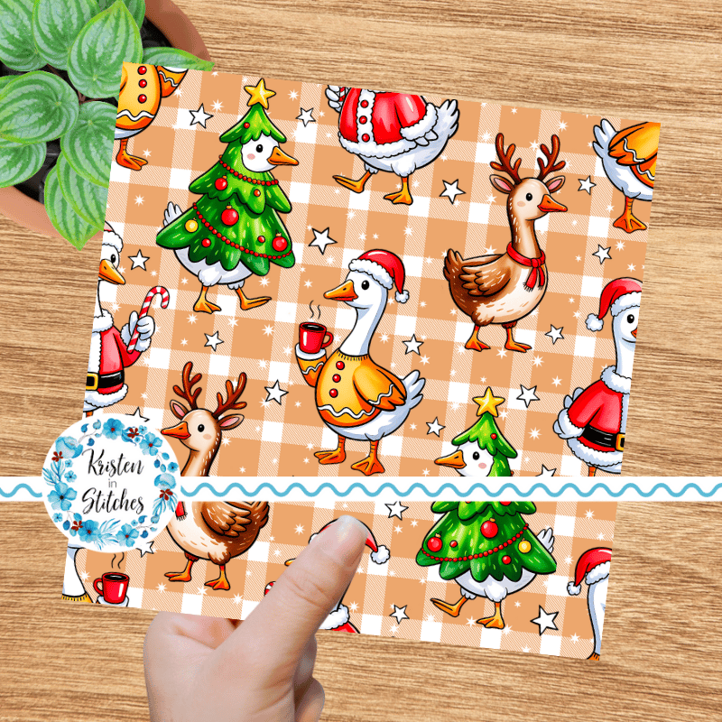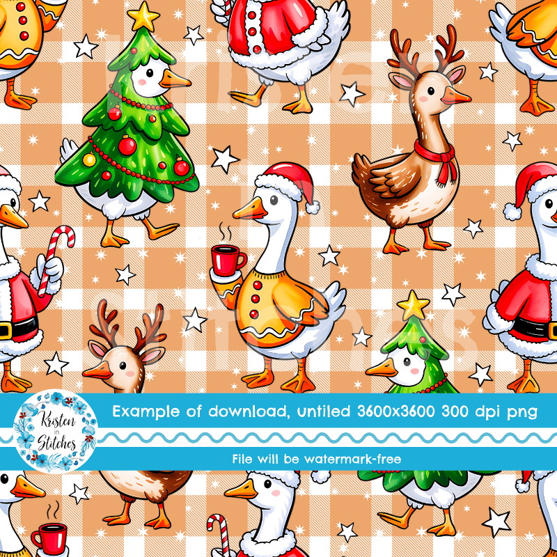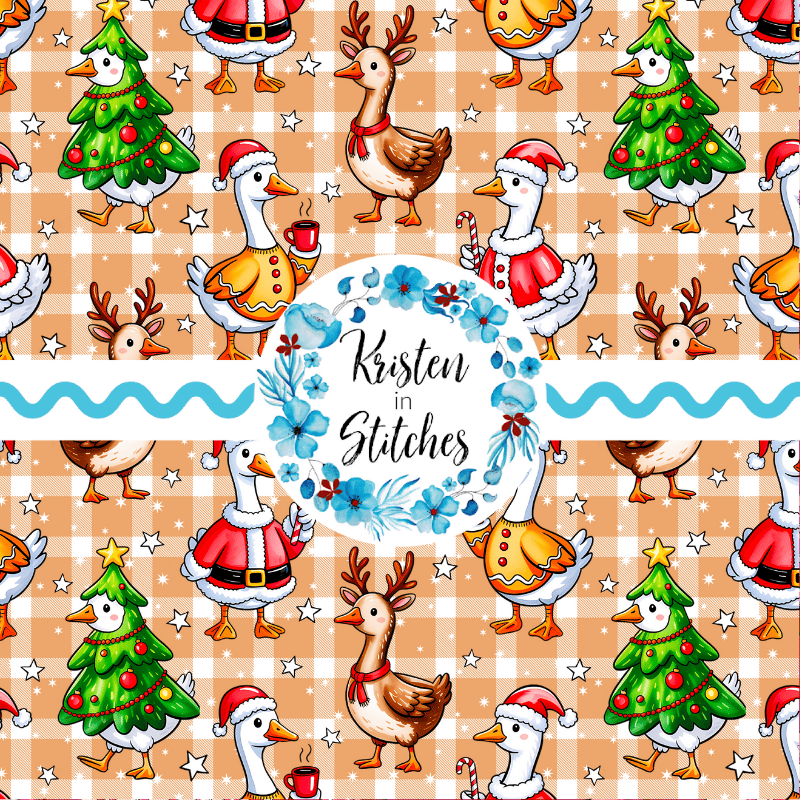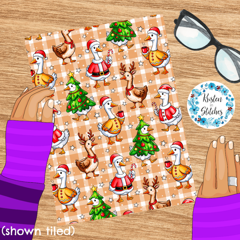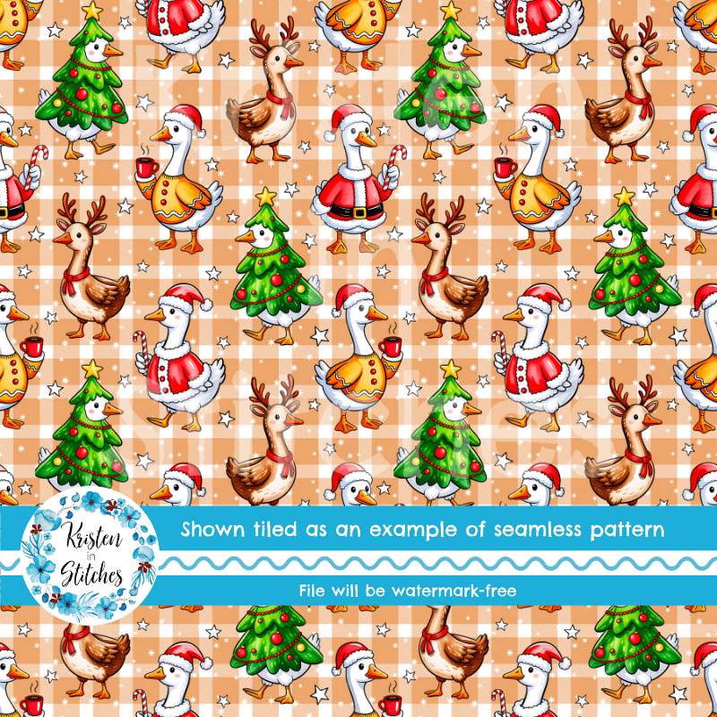 Silly Goose Christmas Christmas Seamless Pattern, Tan Gingham Plaid
