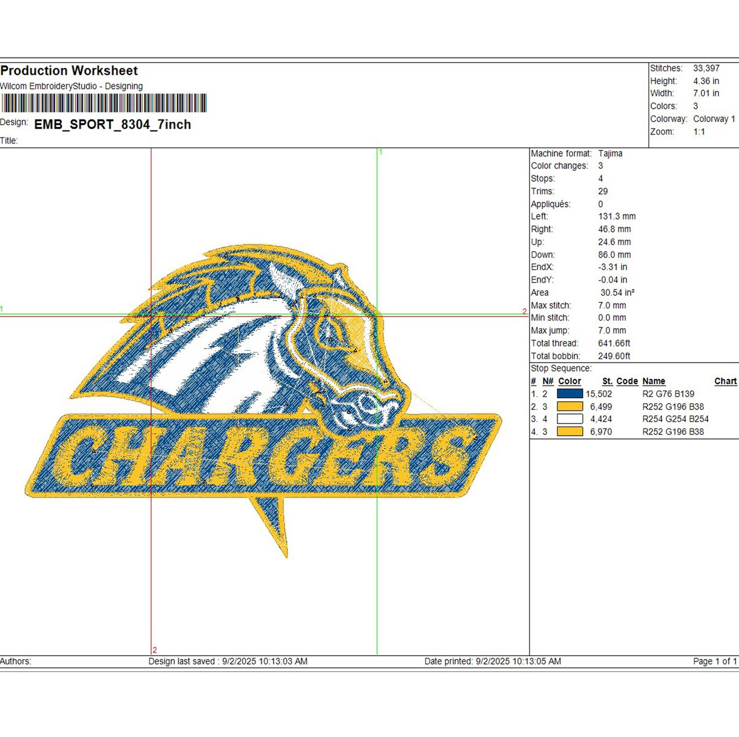 New Haven Chargers NCAA College Football Team Mascot Logo Embroidery Designs, Ncaa Embroidery Files, NCAA New Haven Chargers Team Logo Embroidery, Game Day Machine Embroidery Design, Digital Download