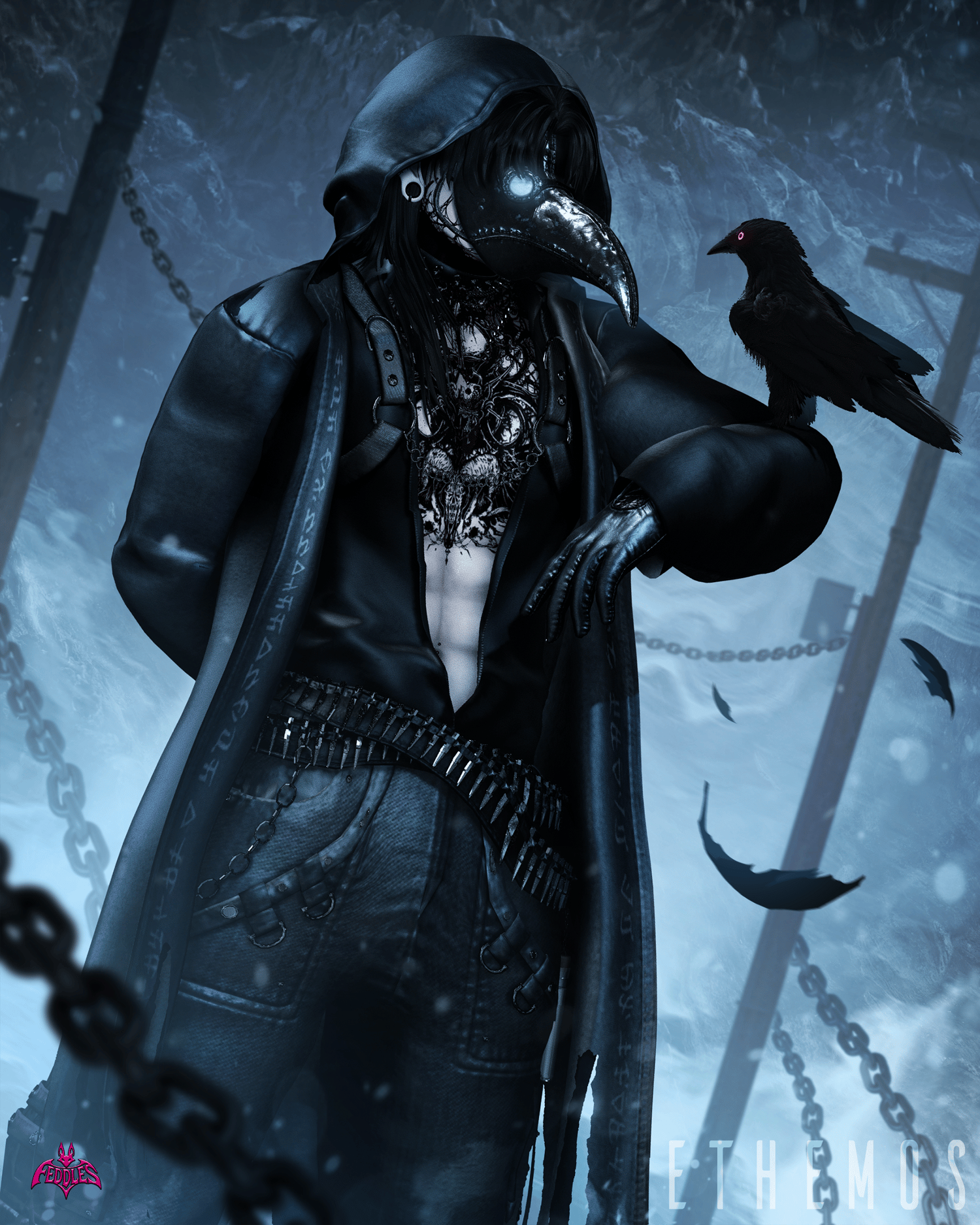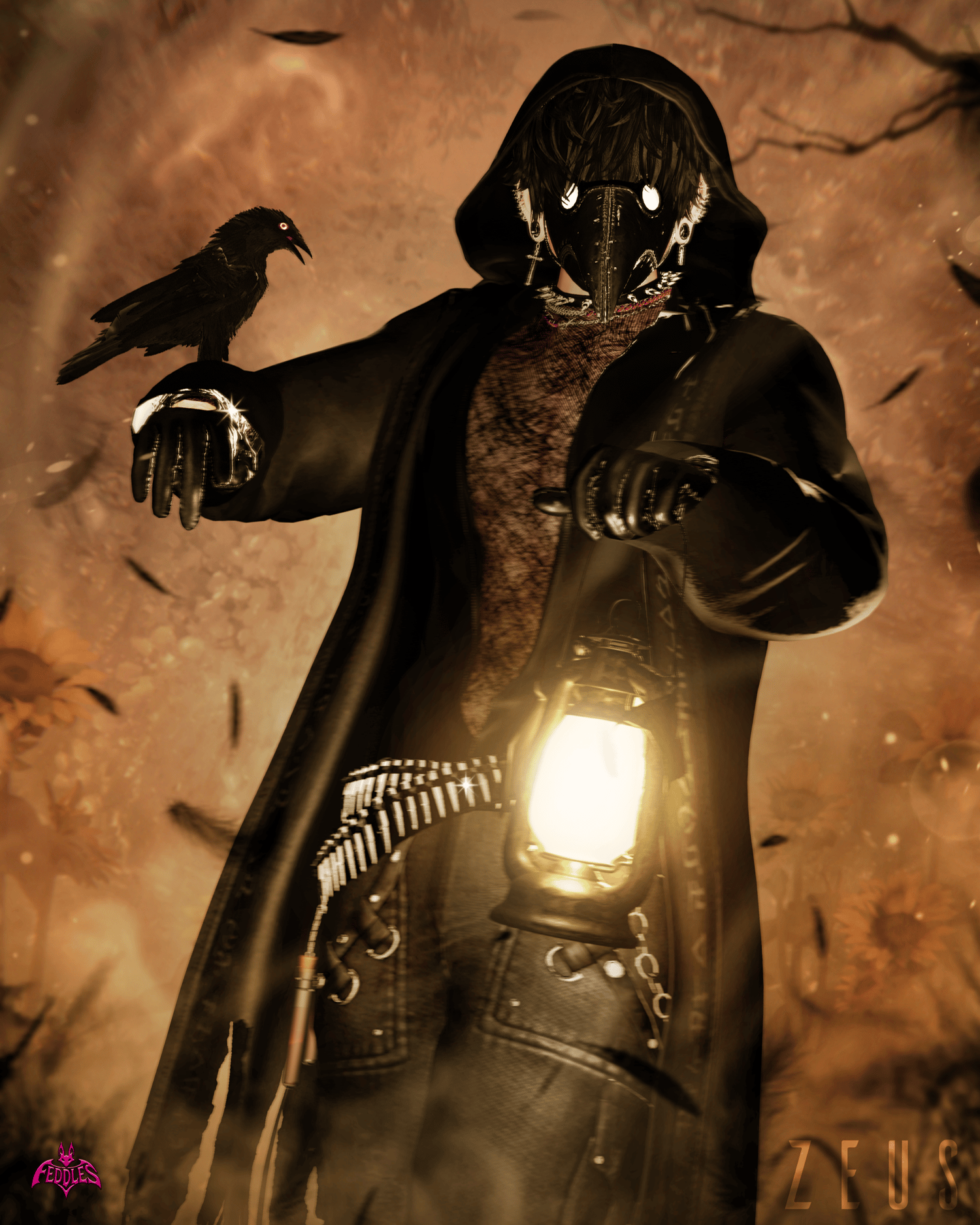 THEMED ASSETS: CROW PET, CLOAK (+ SLEEVES) (RE RIGGED BY ME), PLAGUE MASK, BELT VIALS, LANTERN, WINGS (REANIMATED BY ME) , CROWN, CIGARETTE