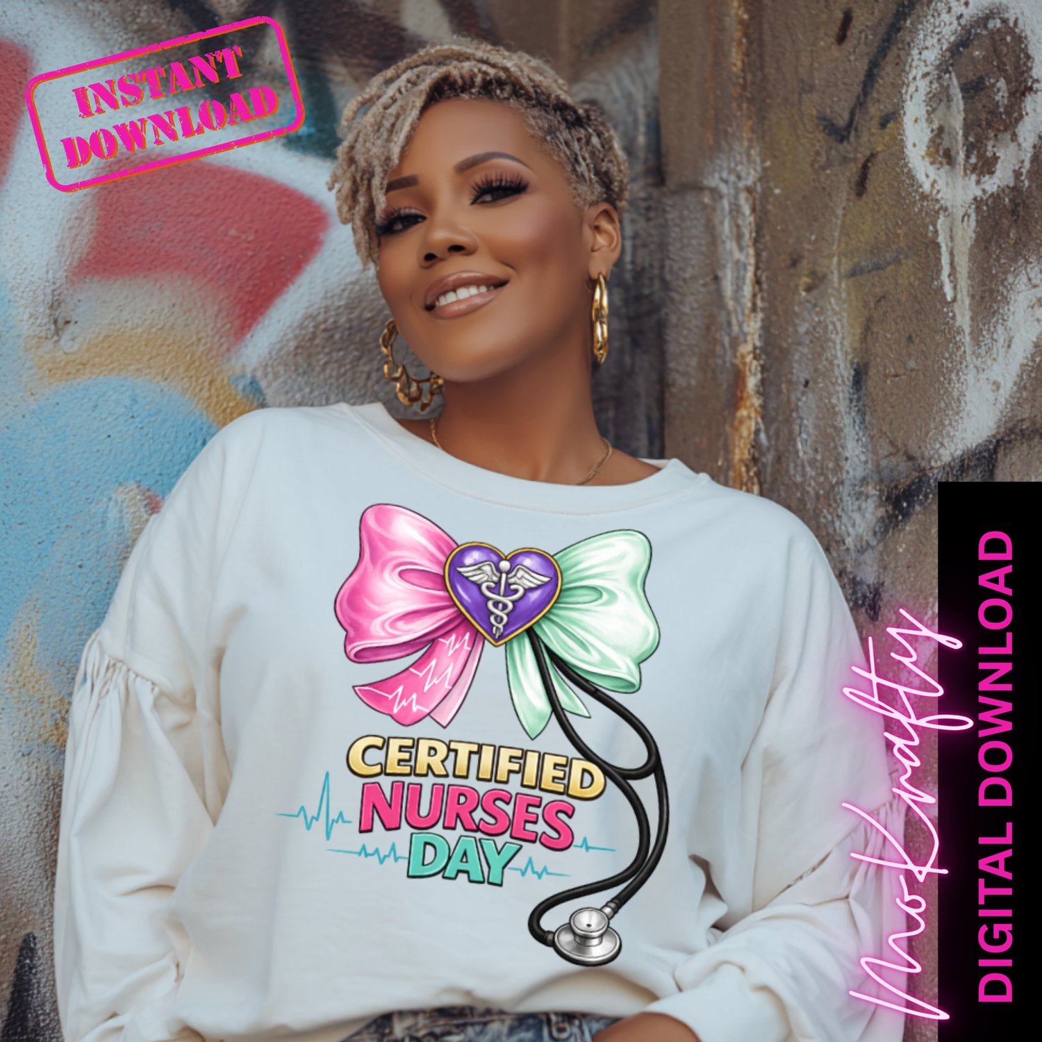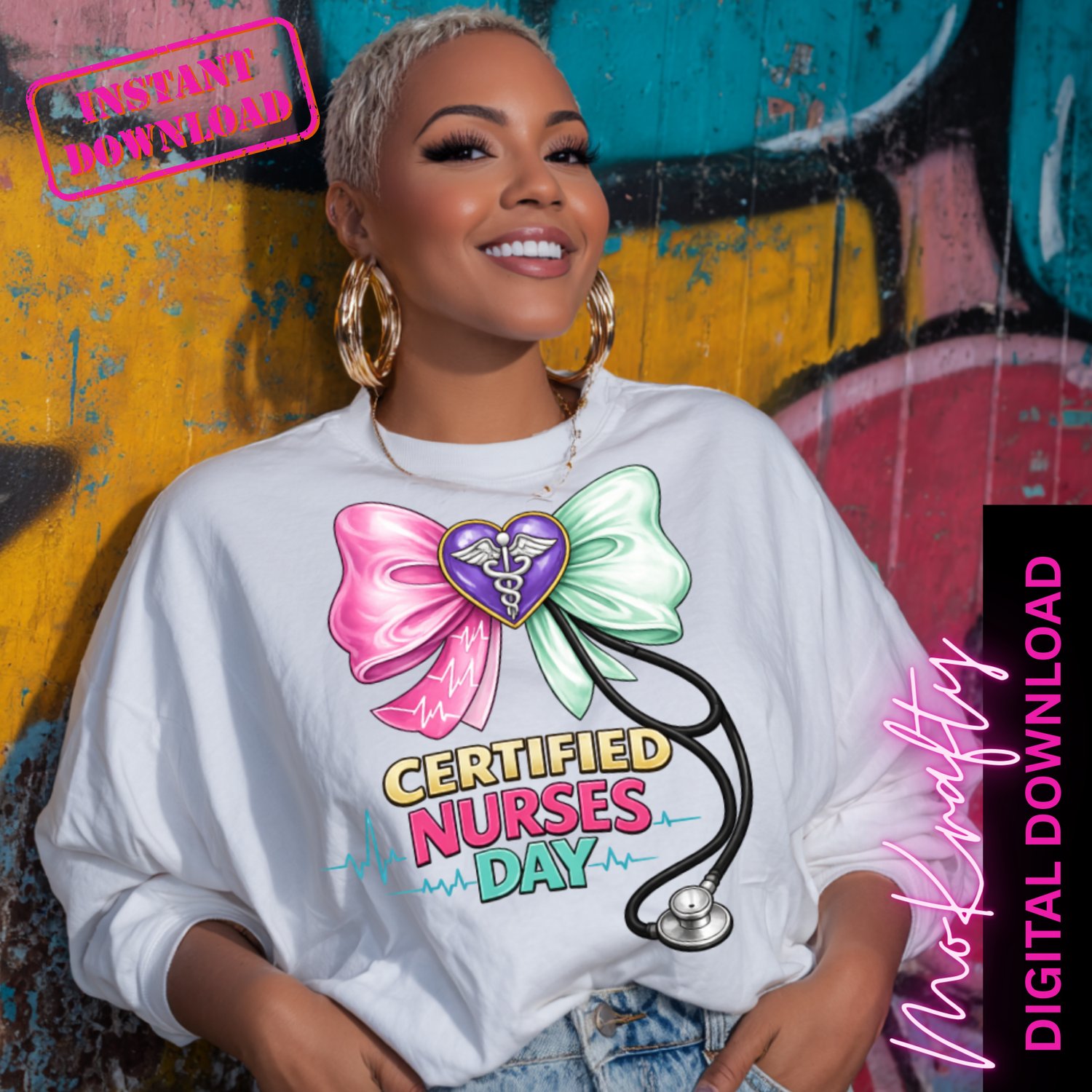 Certified Nurses Day PNG, Nurse Appreciation Design, Nursing Bow & Stethoscope, DTF Sublimation, Instant Digital Download