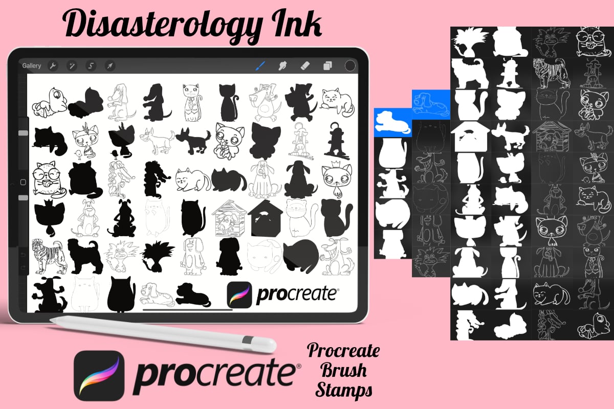 Procreate stamps save time when drawing, saving the effort of having to recreate the same thing for multiple designs and projects, save time on your design by purchasing these cartoon cats and dogs, outline and silhouette brush stamps so you can utilise that time on creating more beautiful art.