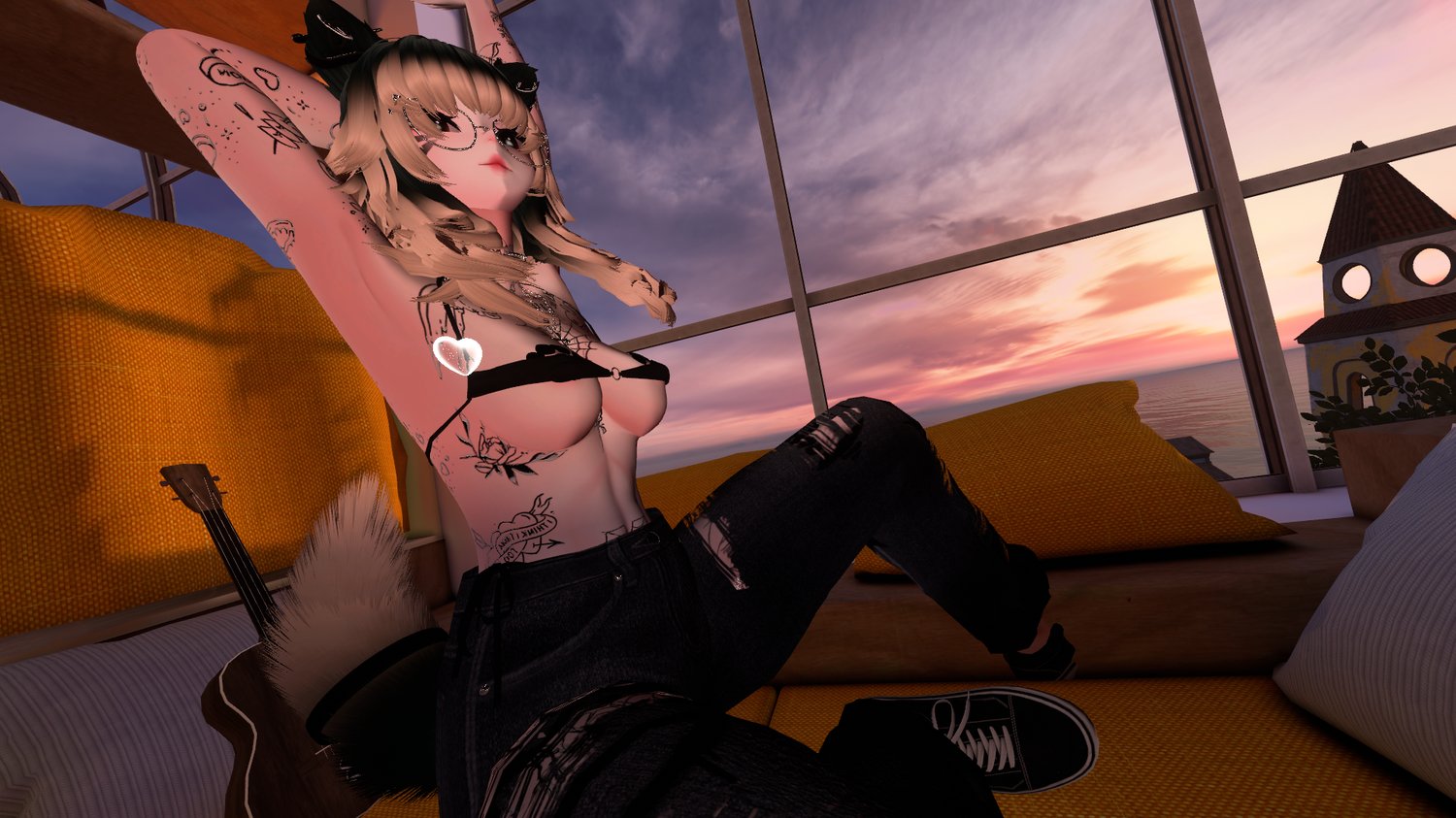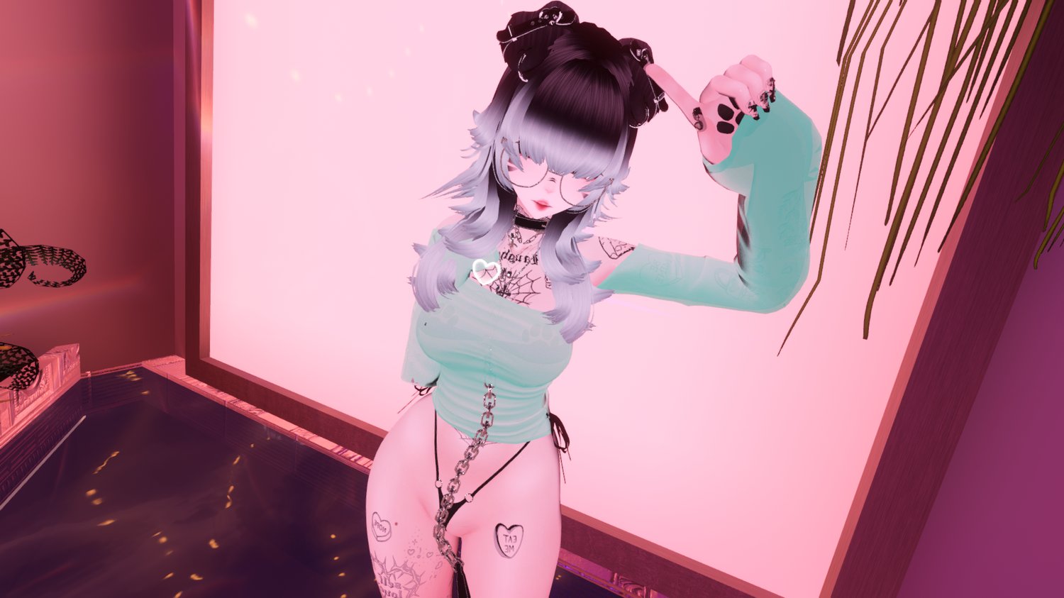 ┆ Starlight head (Heavily Edited) Starlynn ┆ Egirl Base (Heavily Edited) ZinPia ┆ Face Tex yingyangvr,┆ Feline stripes Sakuu_ ┆ Eye Tex Jvliette ┆ Hidden hair Avmbs ┆Tattoo VRCSana┆ Short Hair V3N1X ┆Mid length Hair Nymphee ┆Long Hair Saikura┆Pasties Empress Moon ┆ Bikini TheThiccWitch┆ Crop Top nessy 3D ┆ Collar PaperBag ┆ Bone Gag AskAmber ┆ Glasses Kri┆ Nails, Paws, Necklace Suki┆ Shoes Plaz┆ Ears and Tail Winksvr ┆ Shorts Shizuki ┆ Jeans Saikura ┆ Sheer Top Saikura ┆Bed LittleSaku┆ Sps Wholesome┆ Heart Sapphire Avery┆ Limb Scalier Nanochip ┆Index Snoww
