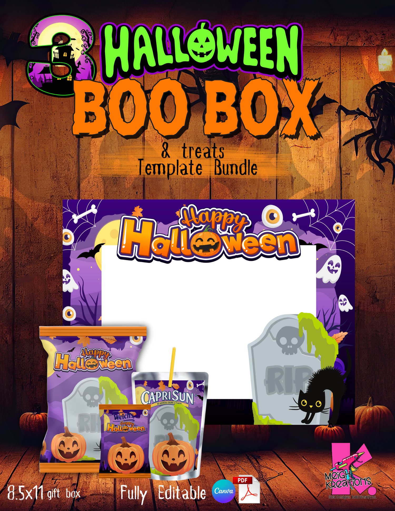 Spook up your celebrations with this fun and festive Halloween Boo Box & Treats Template Bundle! Perfect for parties, trick-or-treat giveaways, or seasonal sales, this set includes everything you need to create eye-catching Halloween-themed packaging.