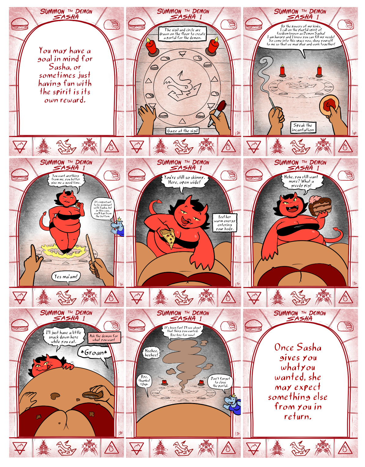 Illustrated rituals for entering the Feedism Temple, summoning an angelic spirit of expansion, a demonish imp spirit of role playing, and a feedist egregore! Also different versions of the temple, and various elemental spirits.