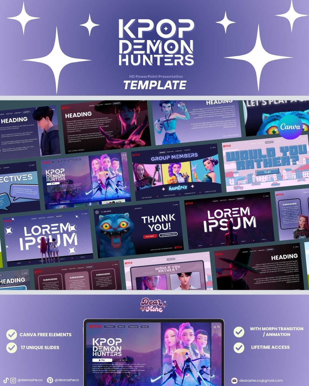Tired of boring, corporate-looking PowerPoint templates? Say hello to a presentation that actually eats. Just dropped my K-pop Demon Hunter-inspired template for all the baddies out there who wanna slay their slides (literally).