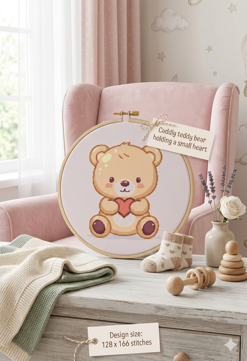 Cuddly Teddy Bear Holding a Heart – Cross Stitch Pattern