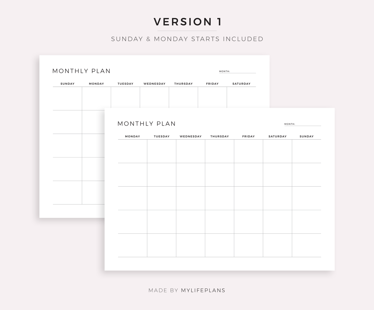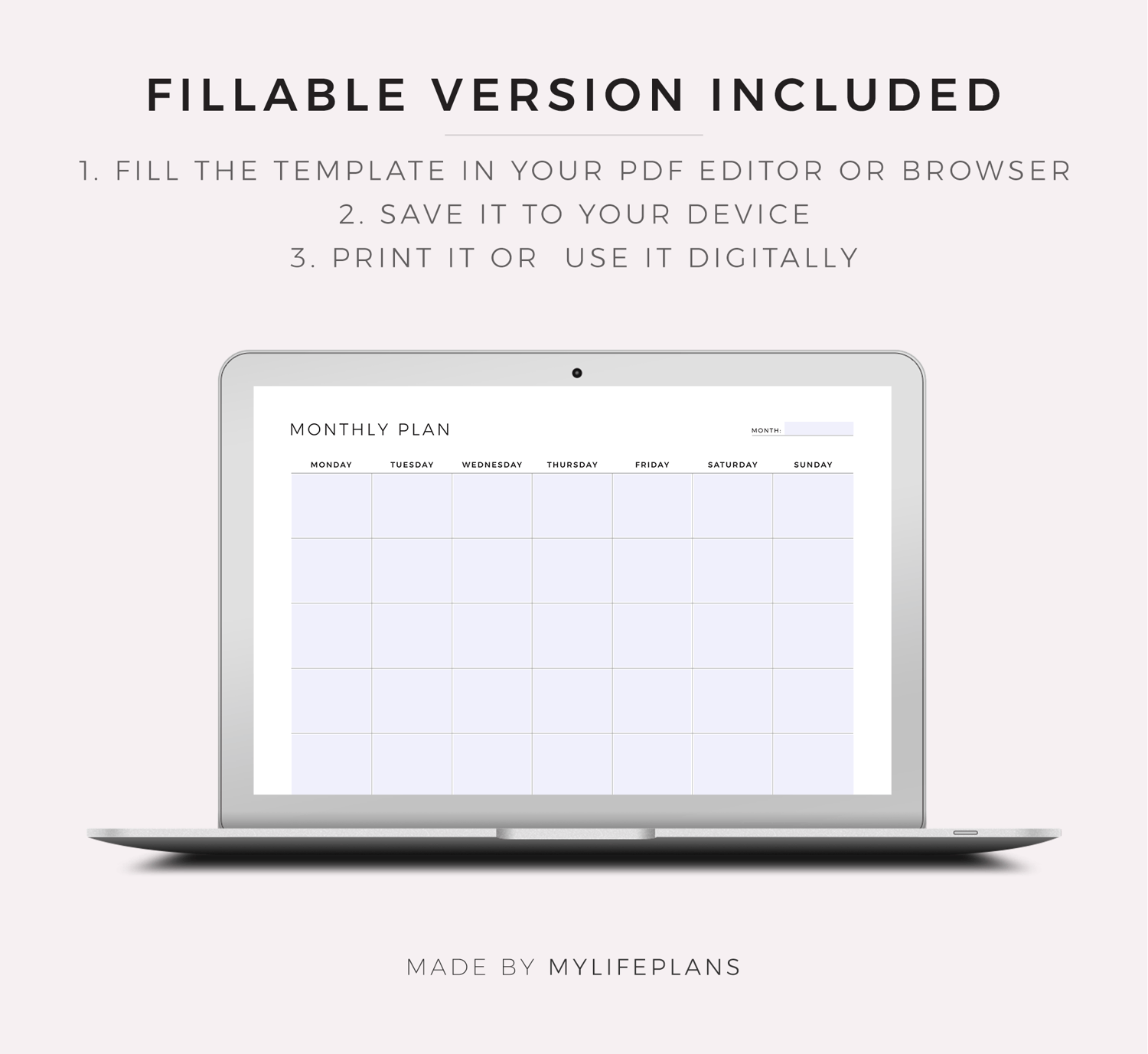 This is a printable undated monthly planner — just download, print, and start using it right away.