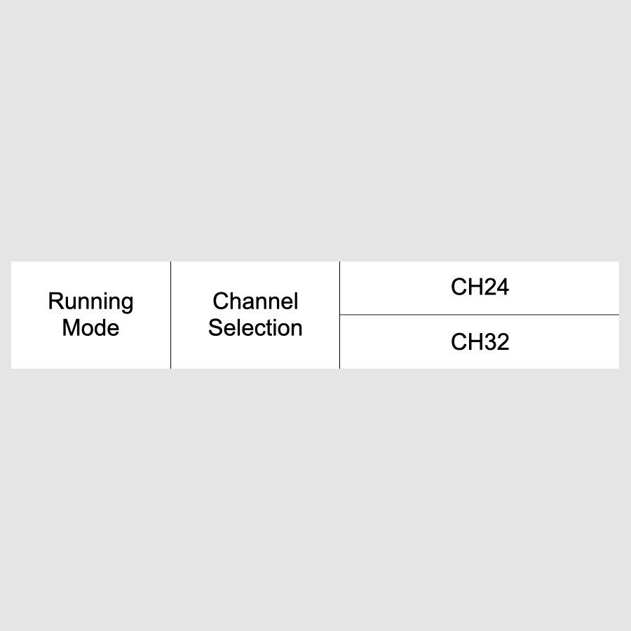 * Verifique, desde el display del equipo, que el menú "Running Mode / Channel Selection" muestre los modos: CH24 y CH32.