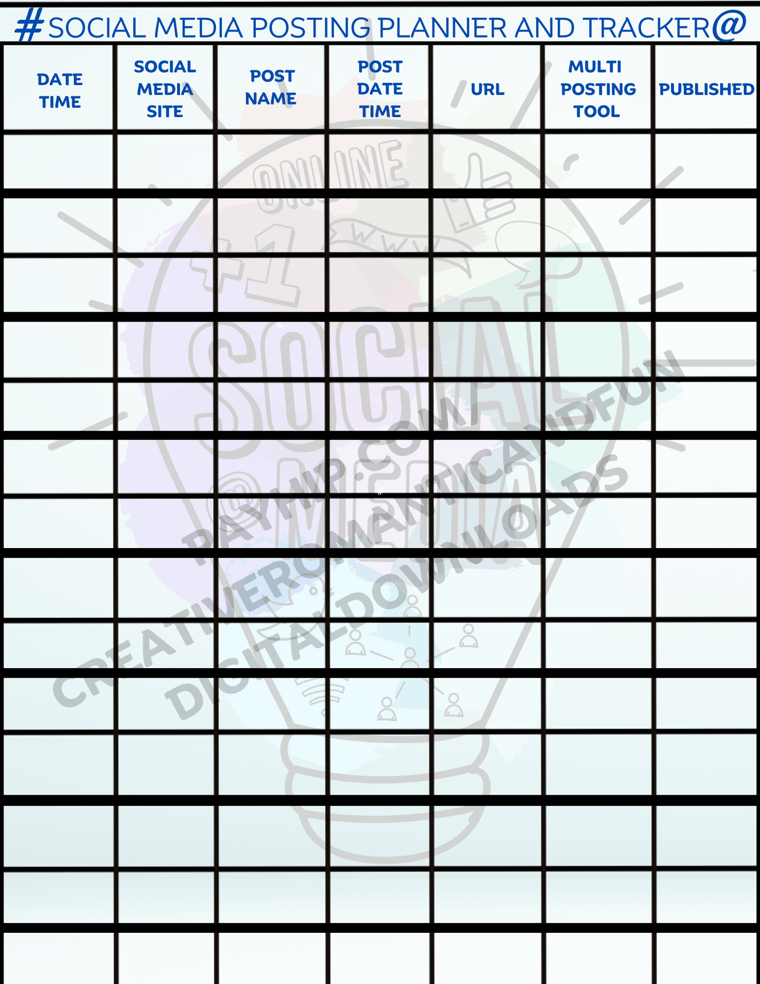 30 PAGE SOCIAL MEDIA POSTING PLANNER AND TRACKER PLUS 9 BONUS PAGES