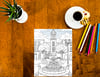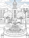 Snowy City Hall Coloring Page | Winter Fountain Scene | Cozy Town Holiday Coloring Art