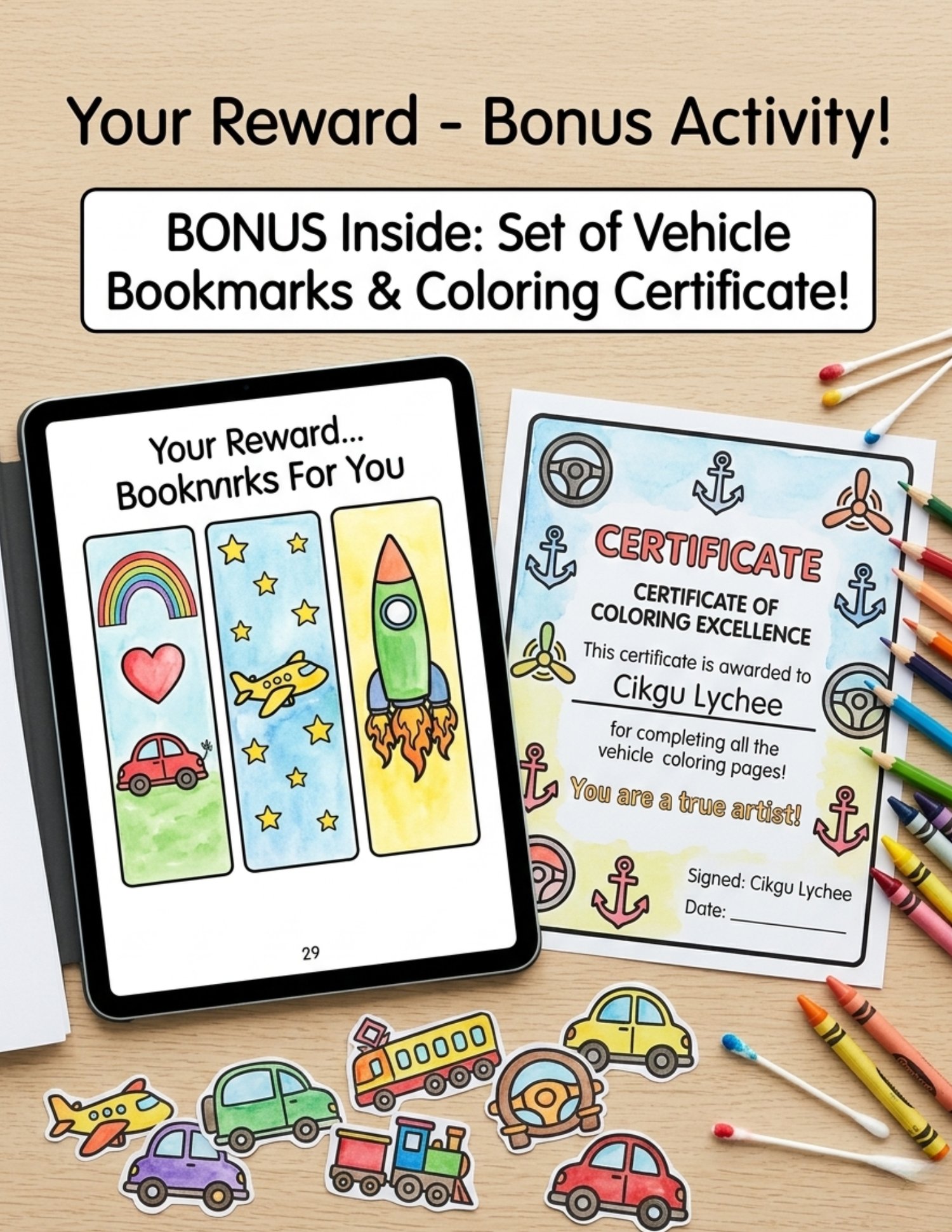 Get your copy of "MY FIRST VEHICLES COLORING BOOK" today and start the adventure!