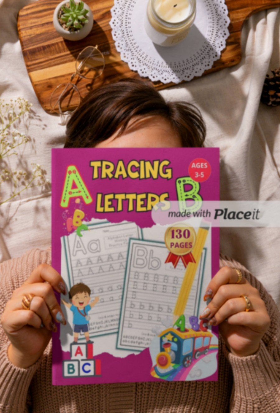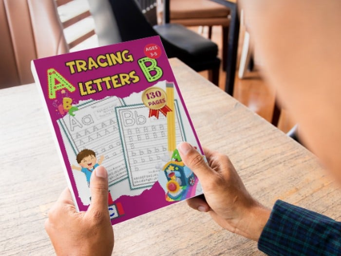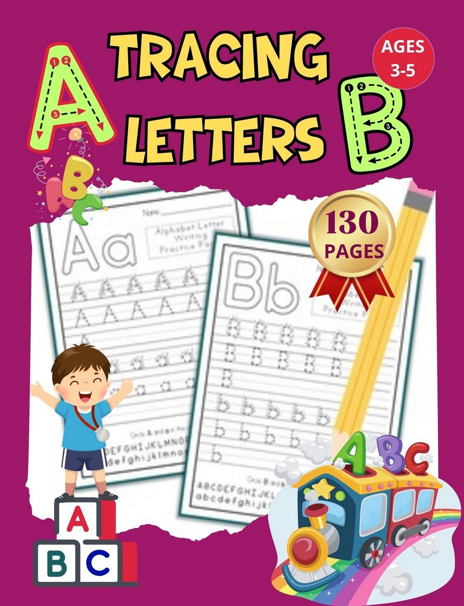 A letter tracing book with 130 pages for children aged 3 to 5 provides engaging activities to help them learn letters and numbers through tracing exercises.
