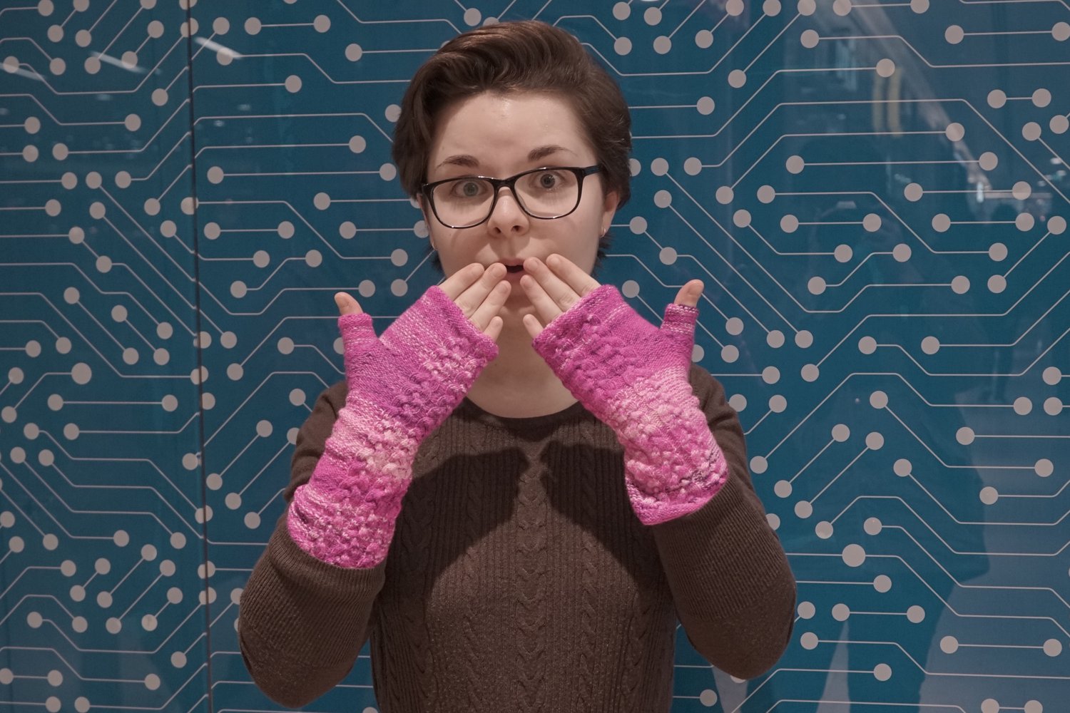 These fingerless mitts are knit using the magic loop method (although the purchaser could easily adapt it for two circulars or double points).