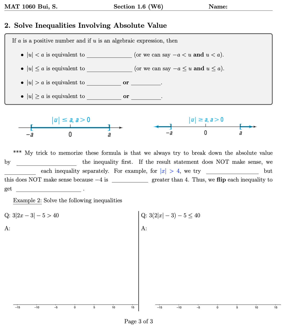 - 1.6 Equations and Inequalities Involving Absolute Value