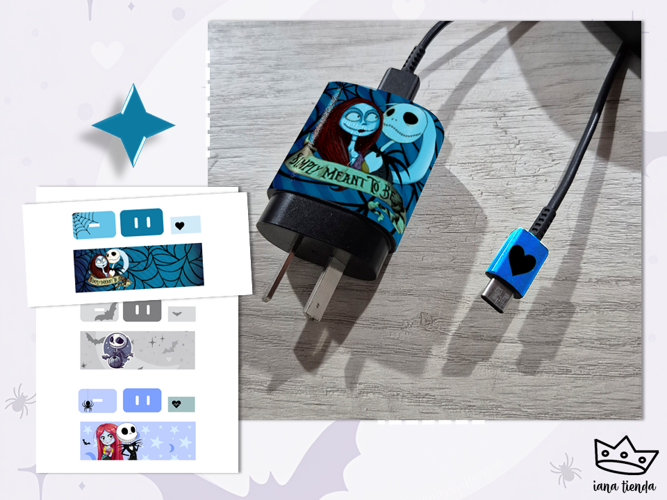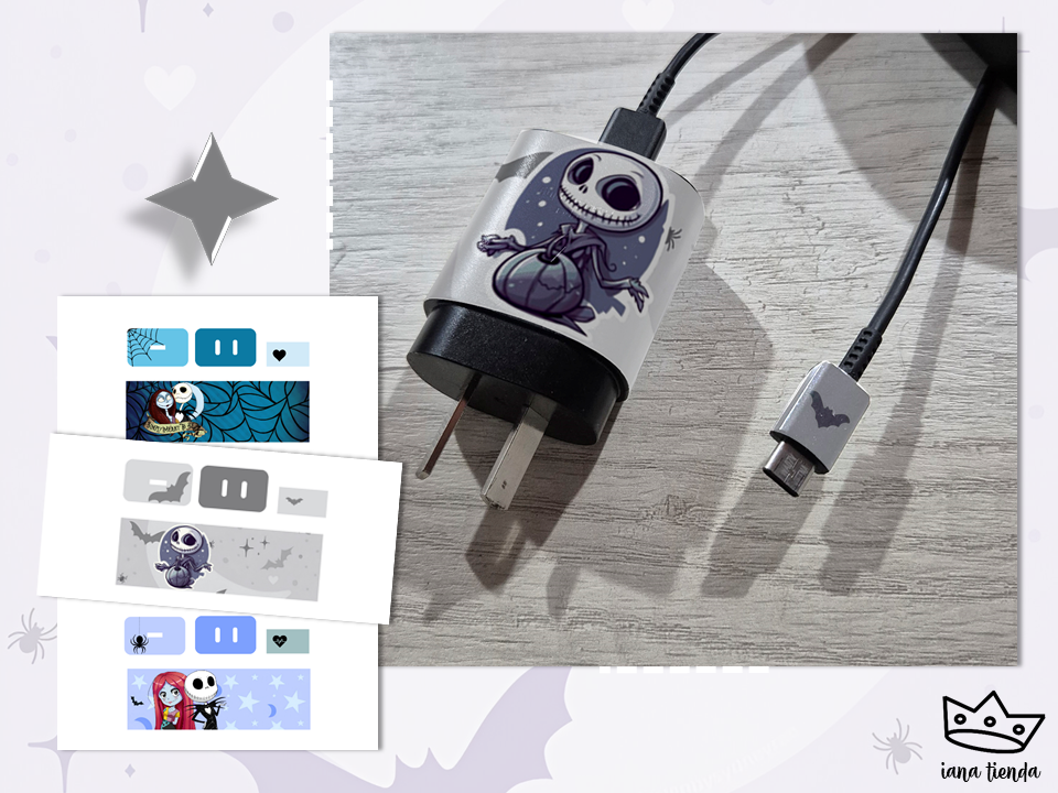 Este set incluye 3 encantadores diseños inspirados en El extraño mundo de Jack, perfectos para personalizar cargadores de celular y darles un toque único y original. Ideal para fans de esta icónica película que desean decorar su cargador con estilo.