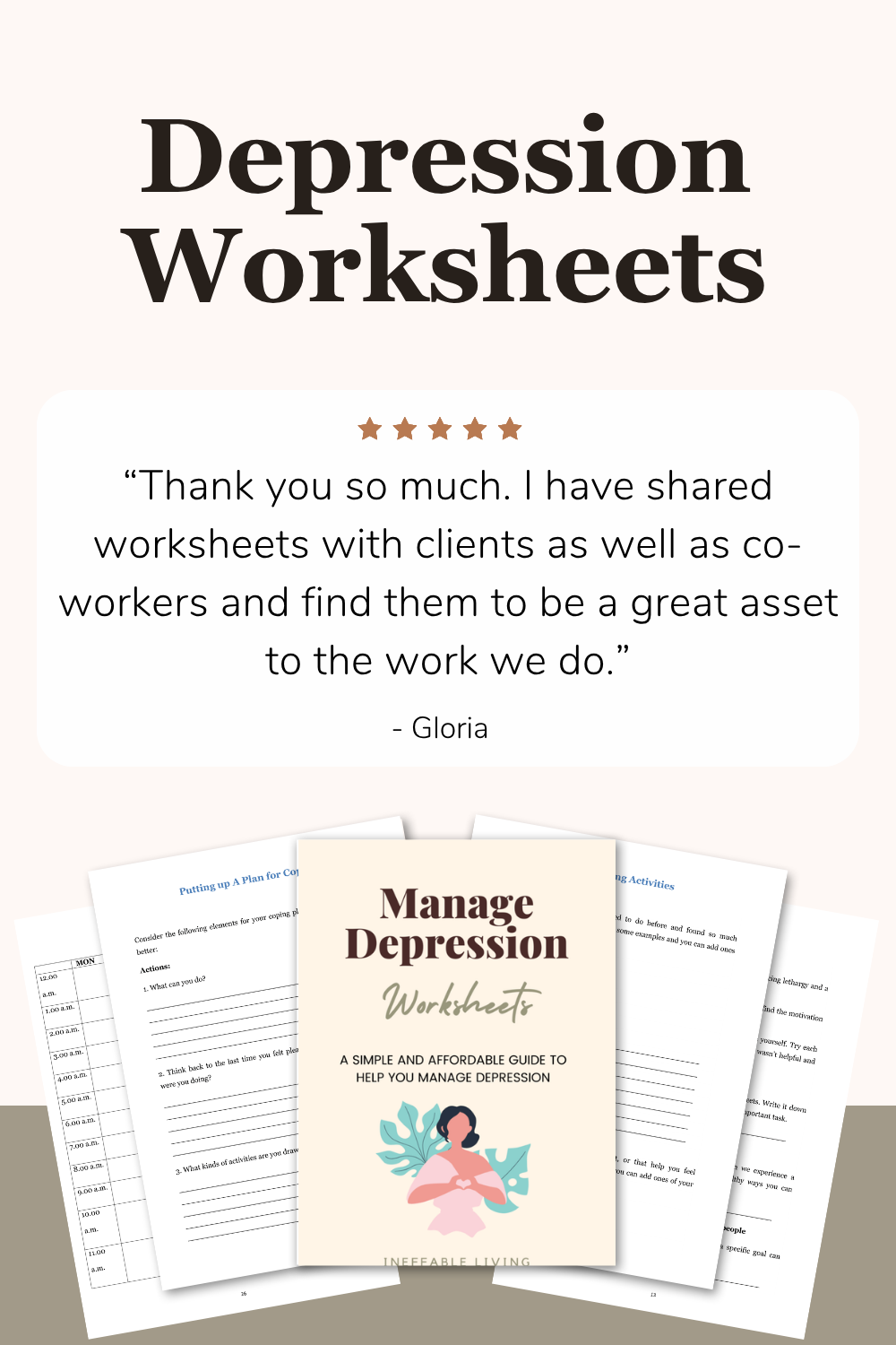 Each worksheet is designed to provide practical guidance and emotional support, empowering you to manage depression in a way that aligns with your needs and values.