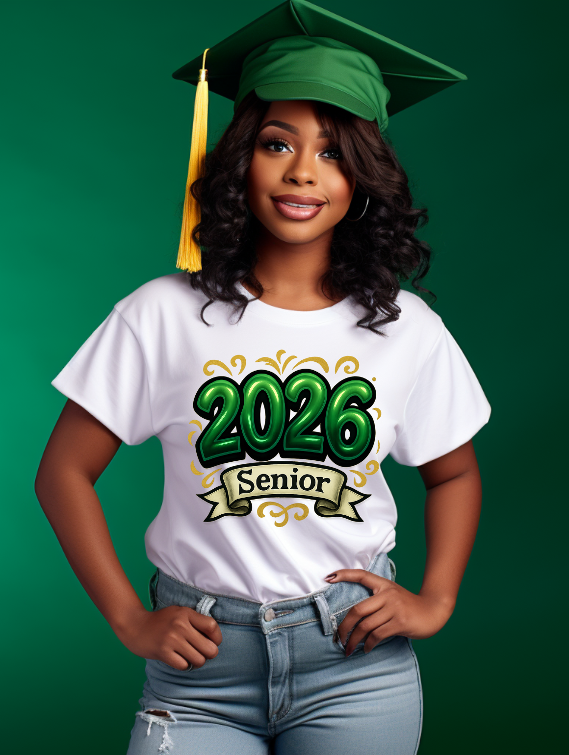 Celebrate your final year in style with this bold green and gold “2026 Senior” design. Perfect for graduation shirts, senior swag, and DIY gifts!