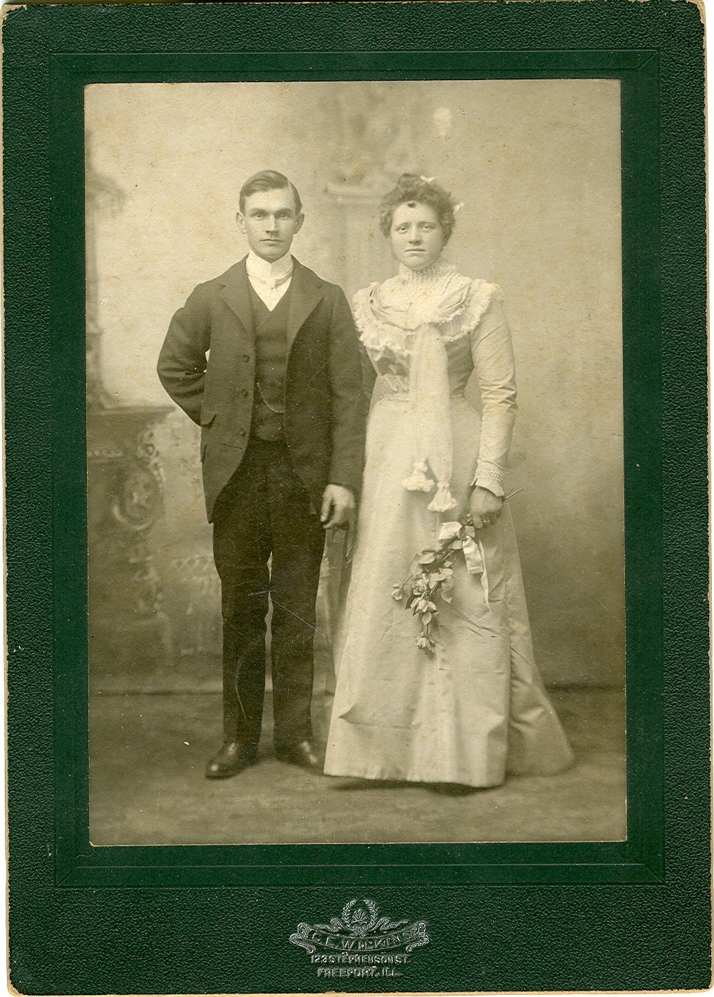 4-page PDF of a transcription of a handwritten family history from the early 20th century on the Hacketts of Dorchester County and a 2-page PDF listing the origins and children of William Hackett (d. 1864) of Forreston, Illinois. The photo is "Mr and Mrs Will Hackett" (image of back of photo is included).