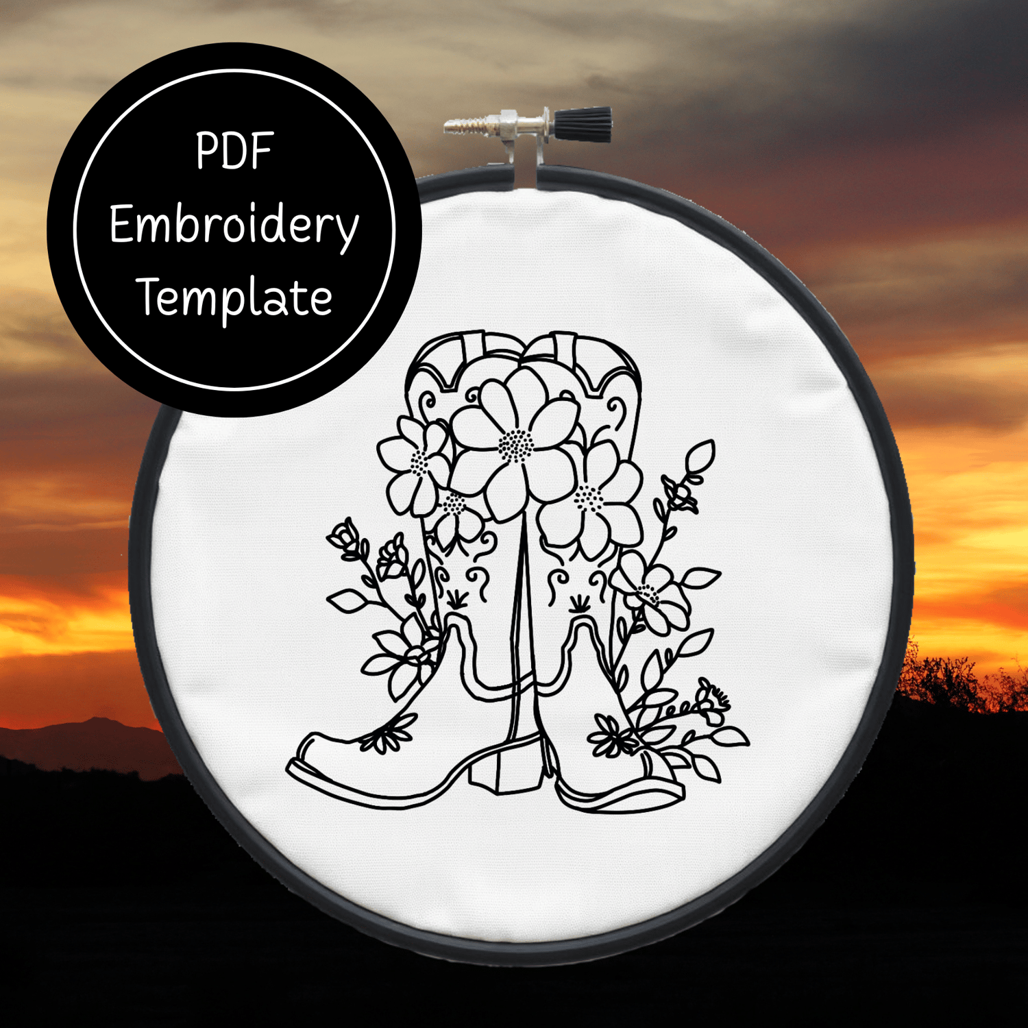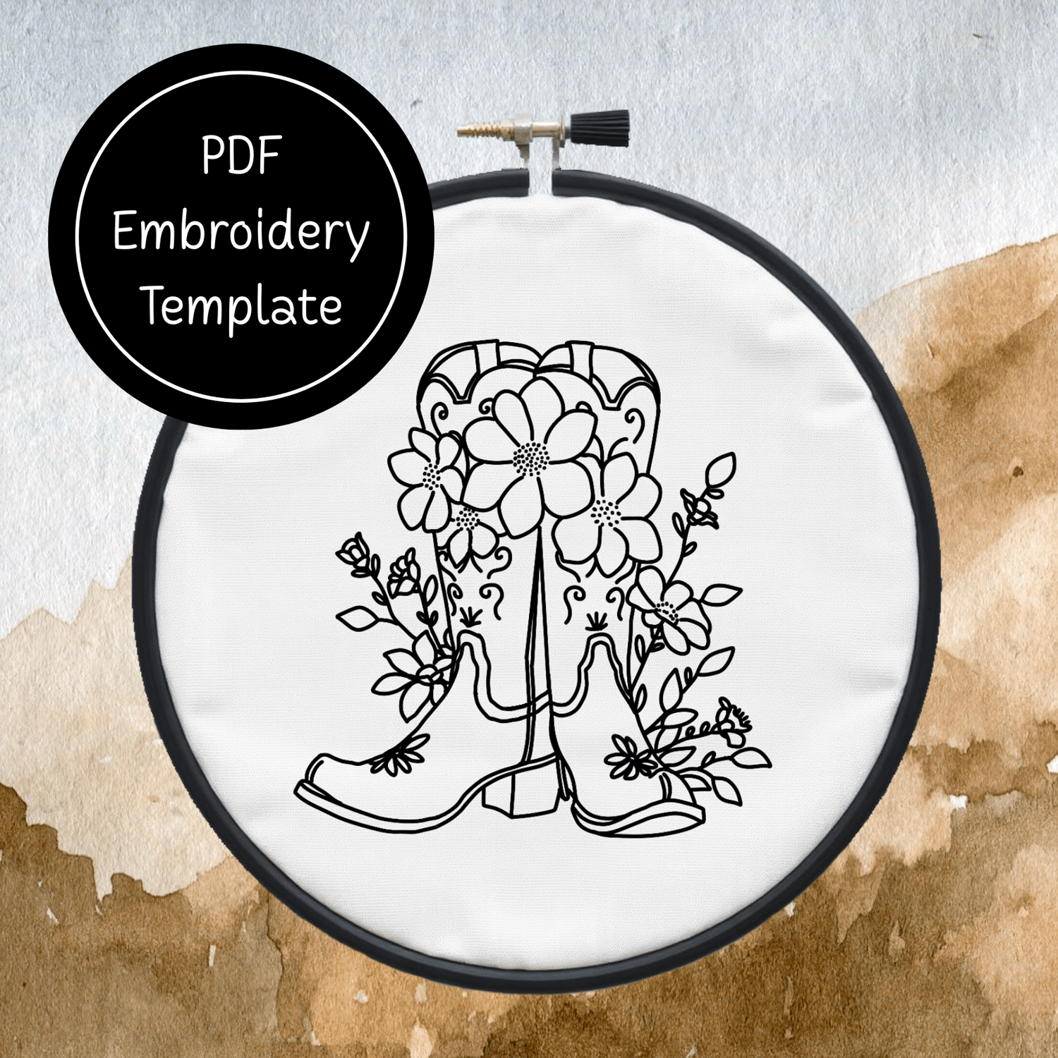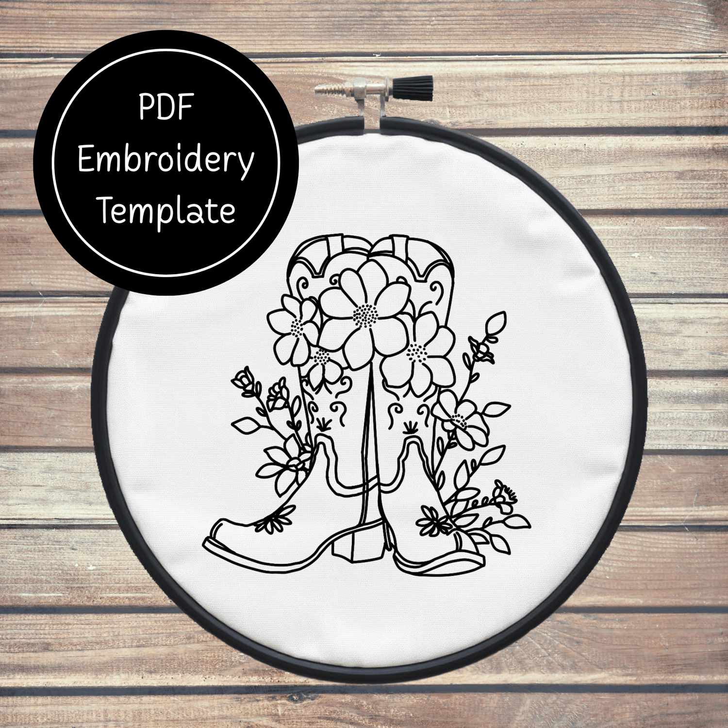 Cowgirl Boots Hand Embroidery Template PDF - DIY Western Design For Hand Stitching - Instant Download