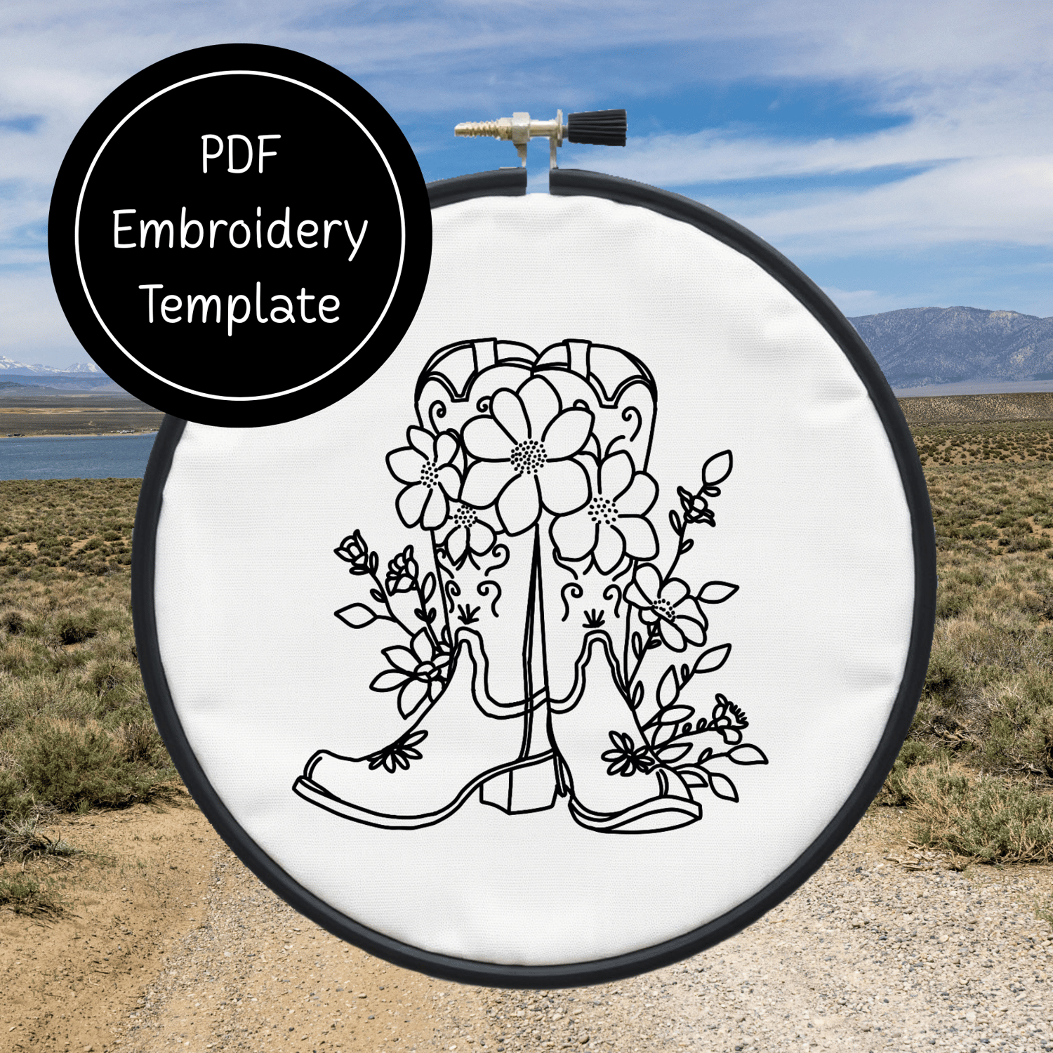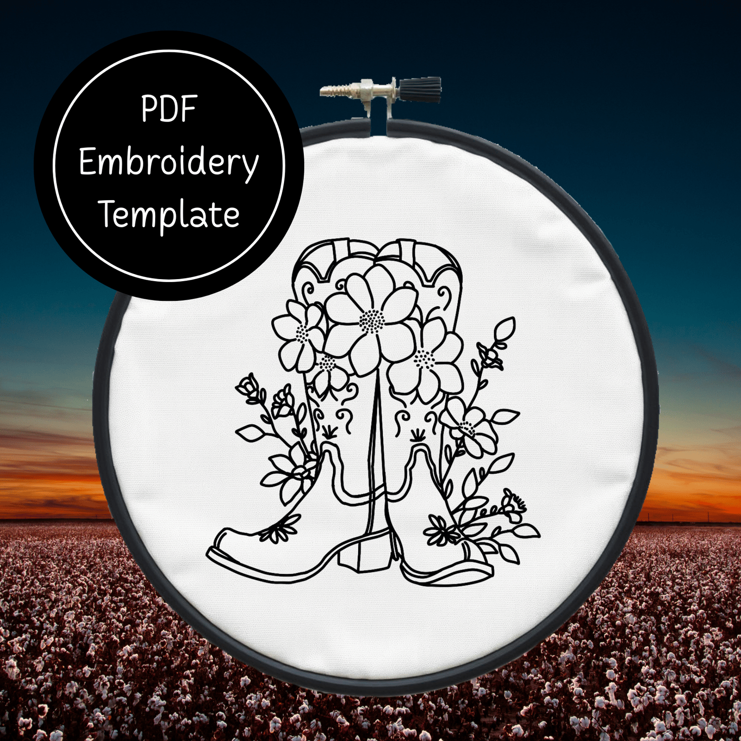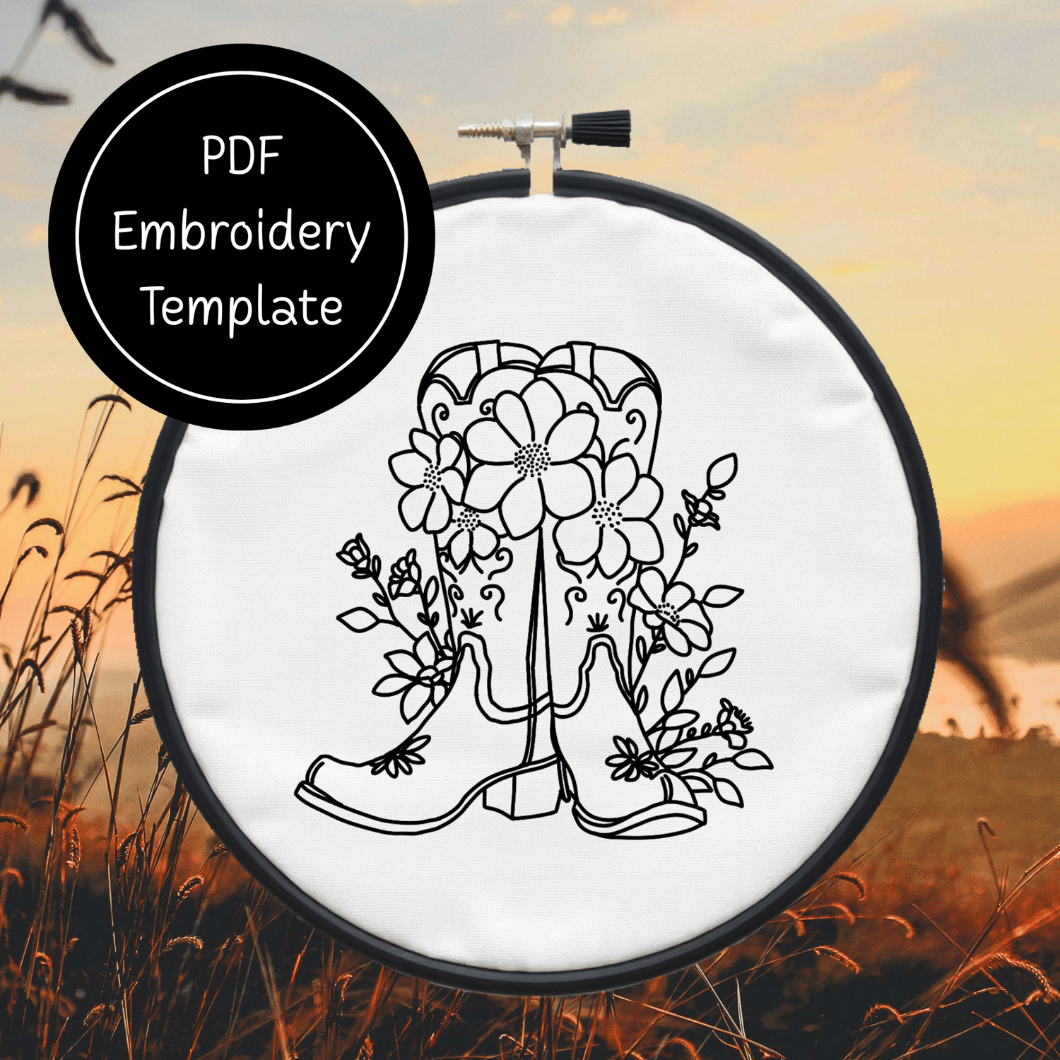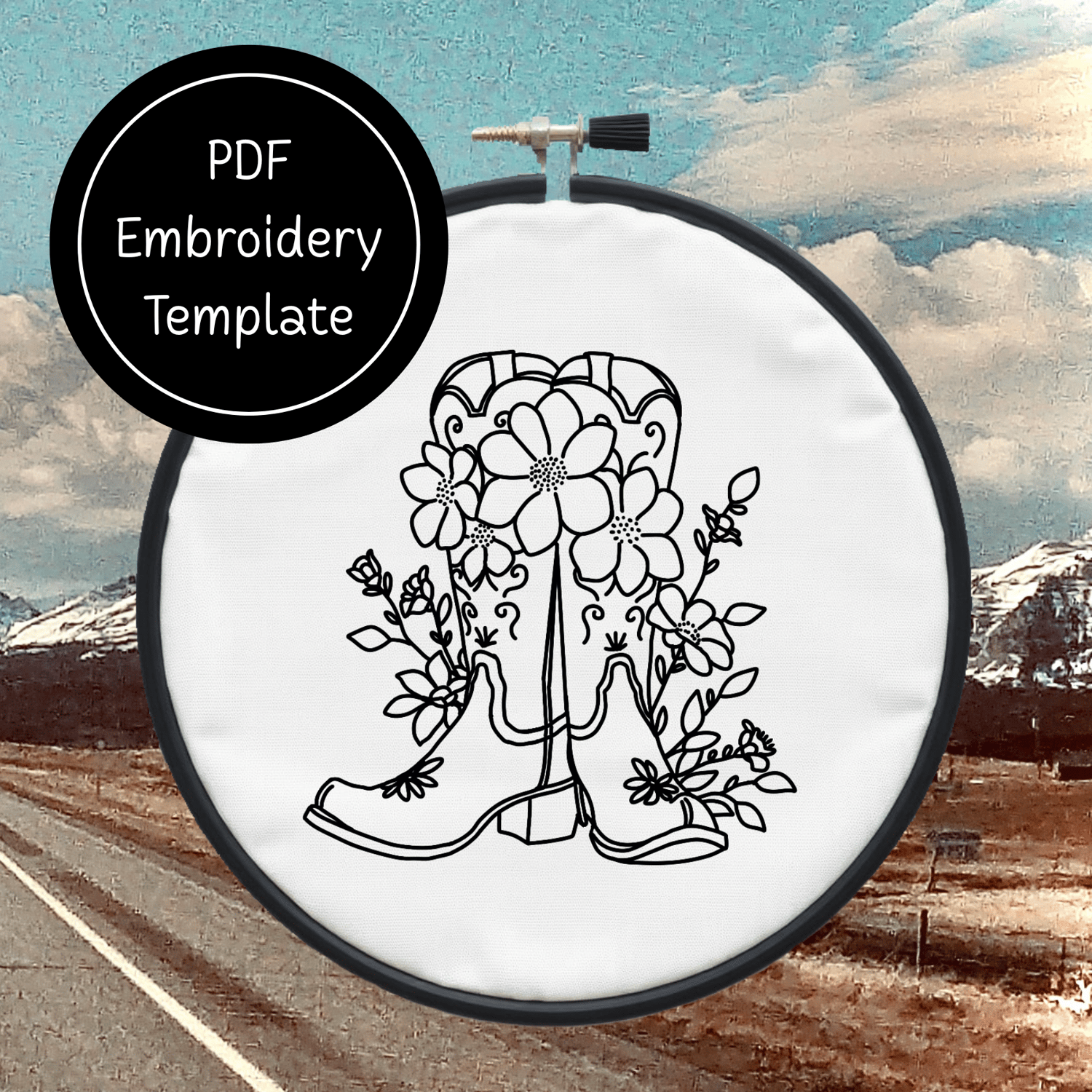 Cowgirl Boots Hand Embroidery Template PDF - DIY Western Design For Hand Stitching - Instant Download