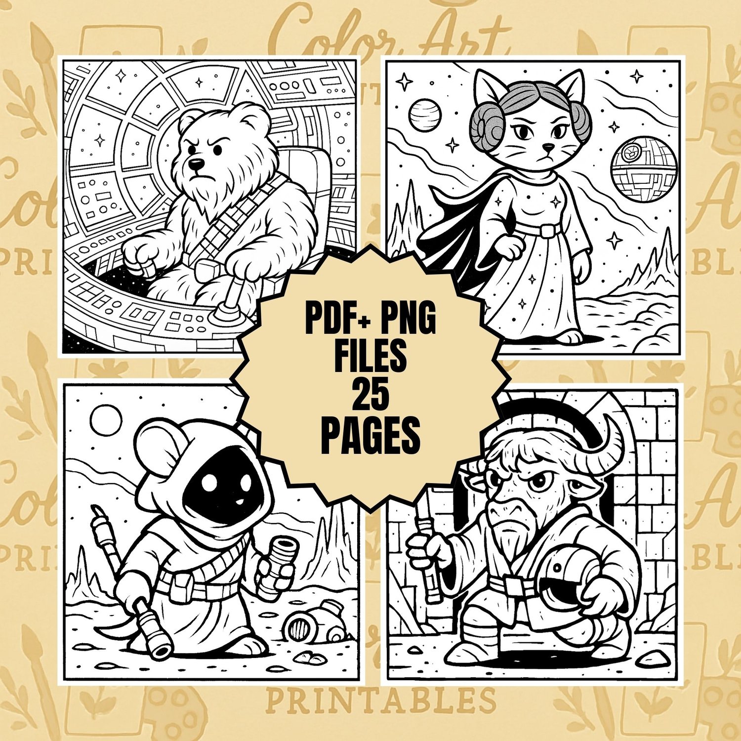 - 25 ilustraciones originales Bold & Easy de animales galácticos acogedores