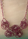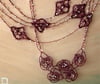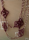 These two ethereal necklaces are sure to pretty up even the most ho-hum outfit. Don’t let the uneven nature of the motifs on the shorter necklace throw you - that’s a main factor in the charm of the piece. Think unstructured crackled glass with beads for bling.