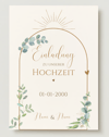 Diese elegante Hochzeitseinladung besticht durch ihre sanften Beige- und Naturtöne, kombiniert mit einem filigranen Pflanzenmuster. Der leichte Vintage-Stil verleiht der Einladung eine nostalgische, charmante Note – perfekt für Hochzeiten im Boho- oder rustikalen Stil.