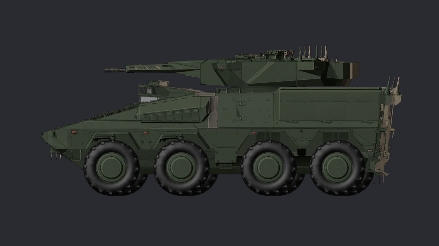 The Boxer CRV (Combat Reconnaissance Vehicle) is a highly adaptable 8x8 armored vehicle known for its modular design, allowing for mission specific configurations. Its advanced protection systems and robust mobility make it an effective platform for reconnaissance and combat operations.