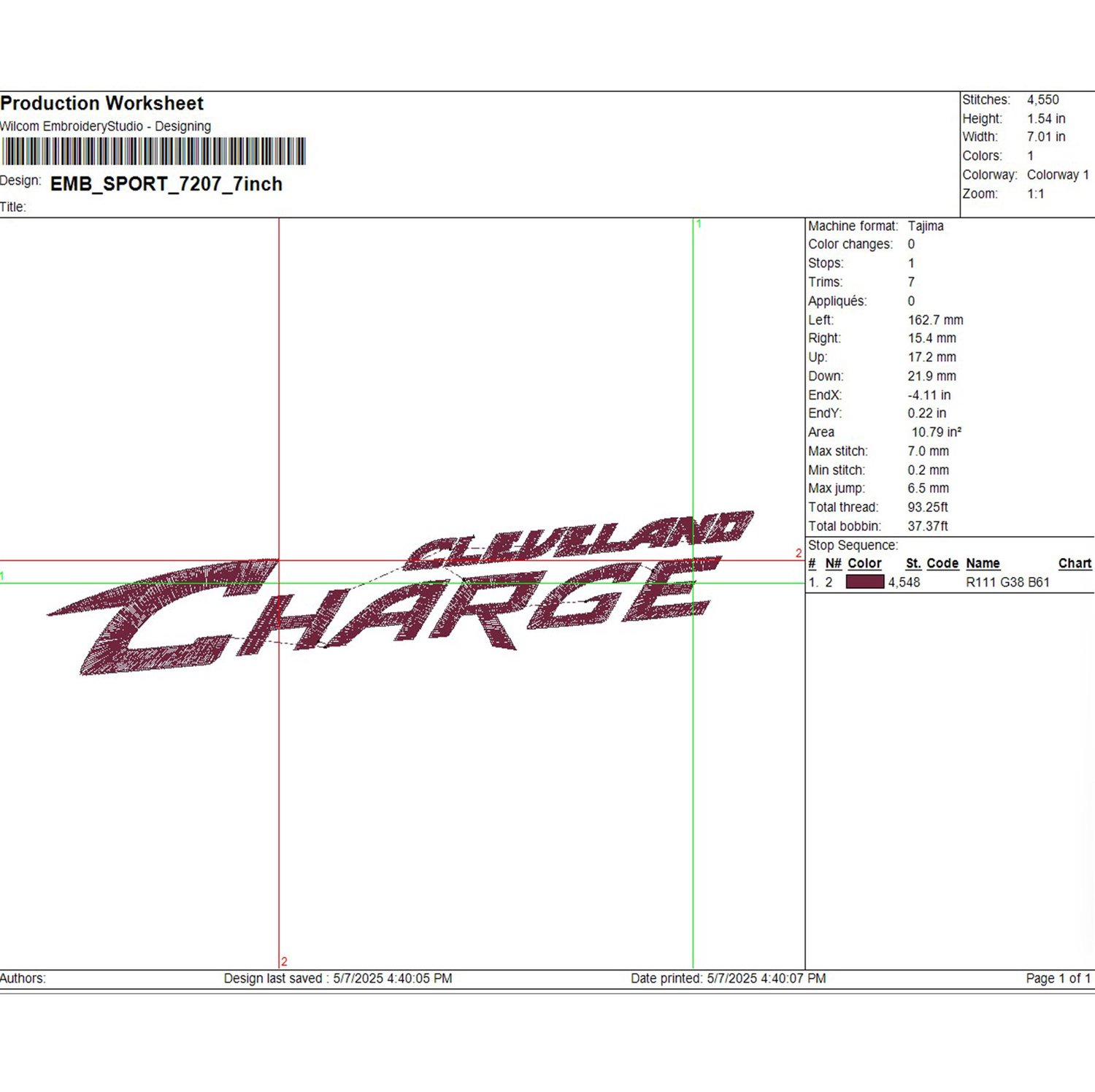 Cleveland Charge NBA Basketball Team Writing Logo Embroidery Designs, NBA Cleveland Charge Logo Machine Embroidery Files, NBA Basketball Team Logo embroidery designs, NBA Cleveland Charge, Digital Download