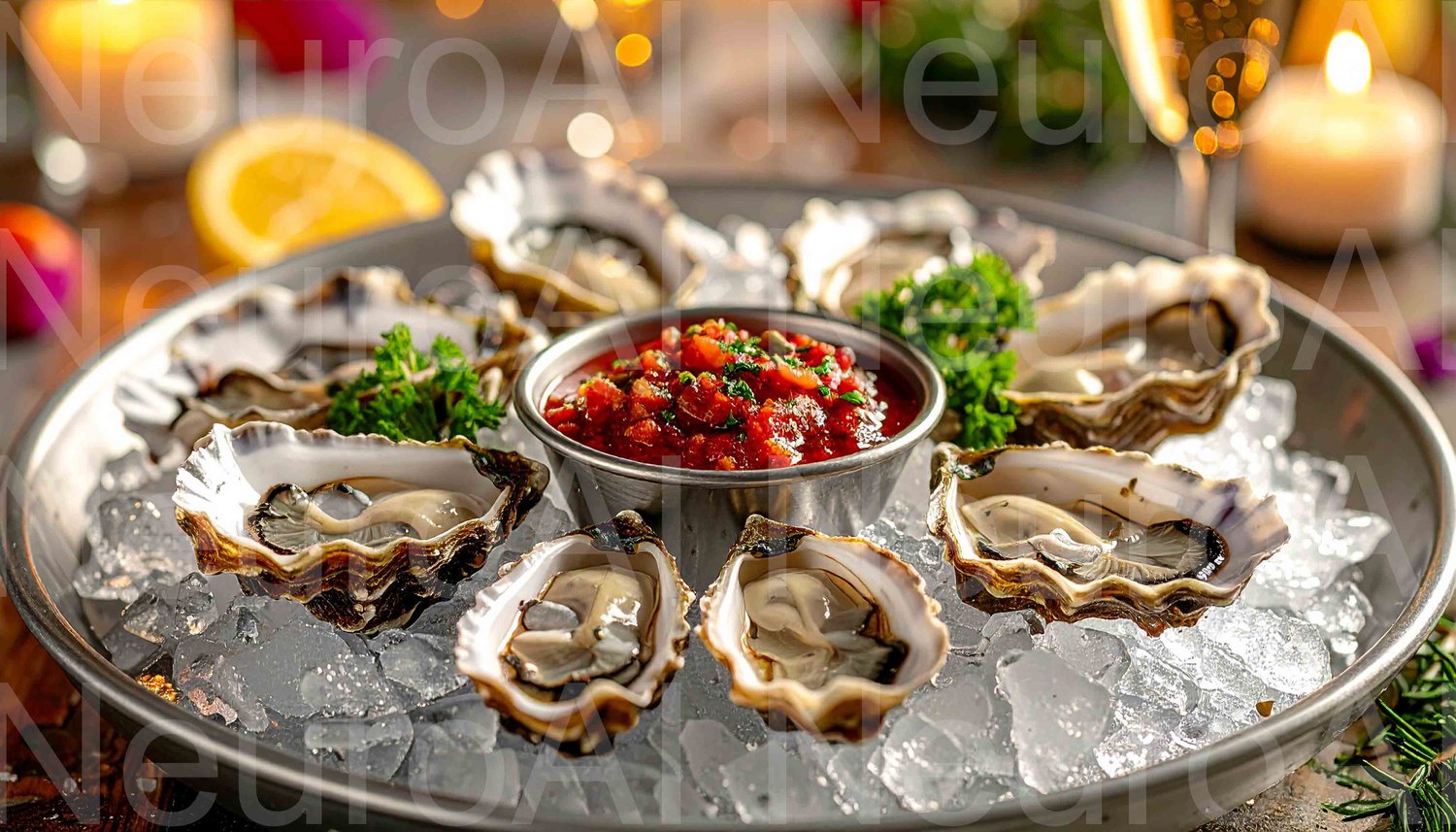 Delight in fresh gourmet oysters on ice with zesty cocktail sauce