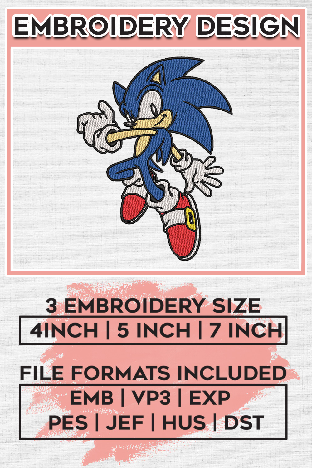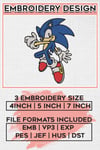 Cartoon Sonic The Hedgehog Embroidery Designs, Sonic The Hedgehog Machine Embroidery Files, Cartoon Character embroidery designs, Sonic Character, Digital Download