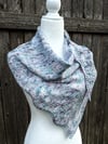 Gauge is not crucial to this pattern, but keep in mind that variance in gauge will also affect the amount of yarn used as well as the overall size of your shawl.
