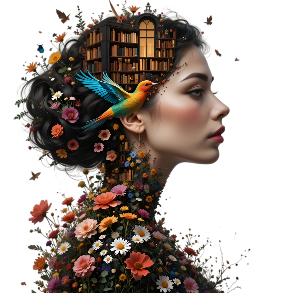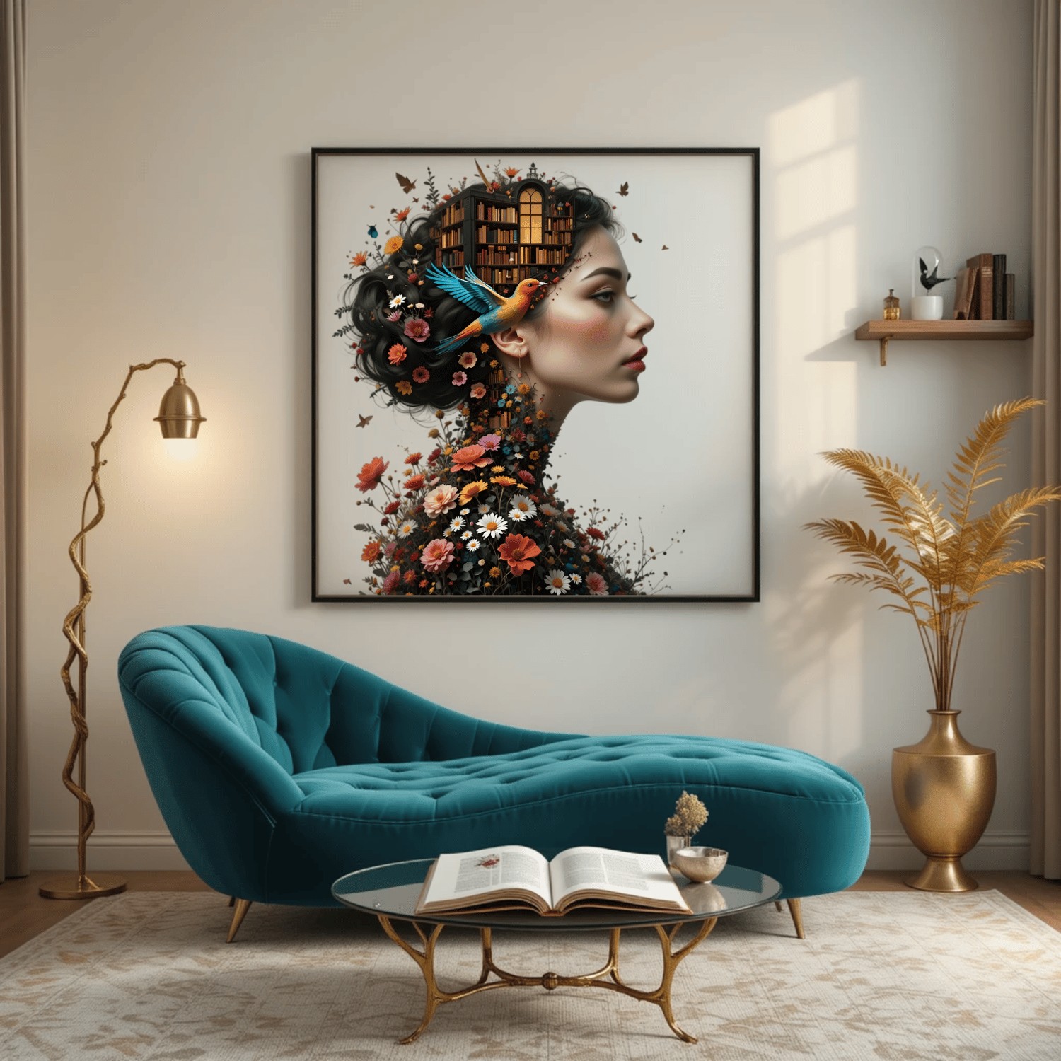 The Floral Mind" is a celebration of the human intellect when nurtured by knowledge. It symbolizes the idea that learning doesn't merely fill the mind—it transforms it, allowing thoughts to bloom like flowers and radiate beauty into every part of life.
