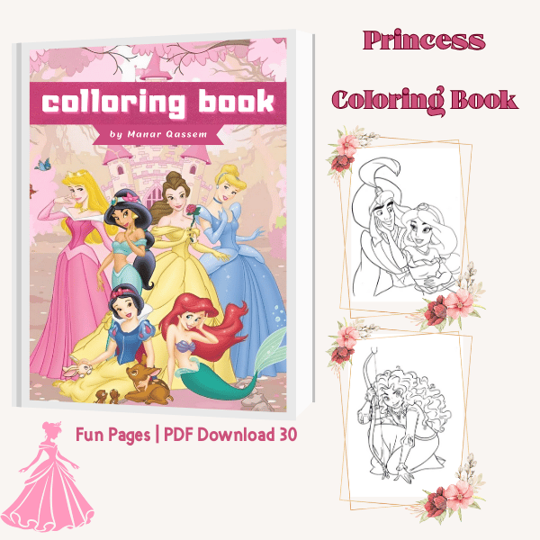 It includes 29 unique princess-themed coloring pages + 1 beautiful cover, ready to print at home.