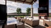 This modern house plan is an architectural masterpiece designed using two 40-foot shipping containers to create 1000 square feet of habitable space. The containers are elevated off the ground on a pier foundation arranged side by side to create a modern container floor plan with 2 bedrooms, a master ensuite, 2.5 bathrooms, laundry, and open-plan living. The living room opens onto a large outdoor deck with alfresco dining overlooking the backyard, which is ideal for a spacious pool deck area and perfect for entertaining.