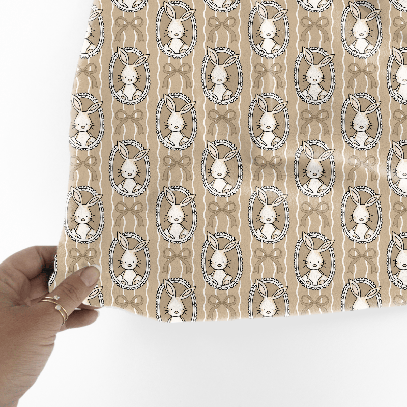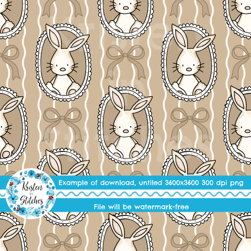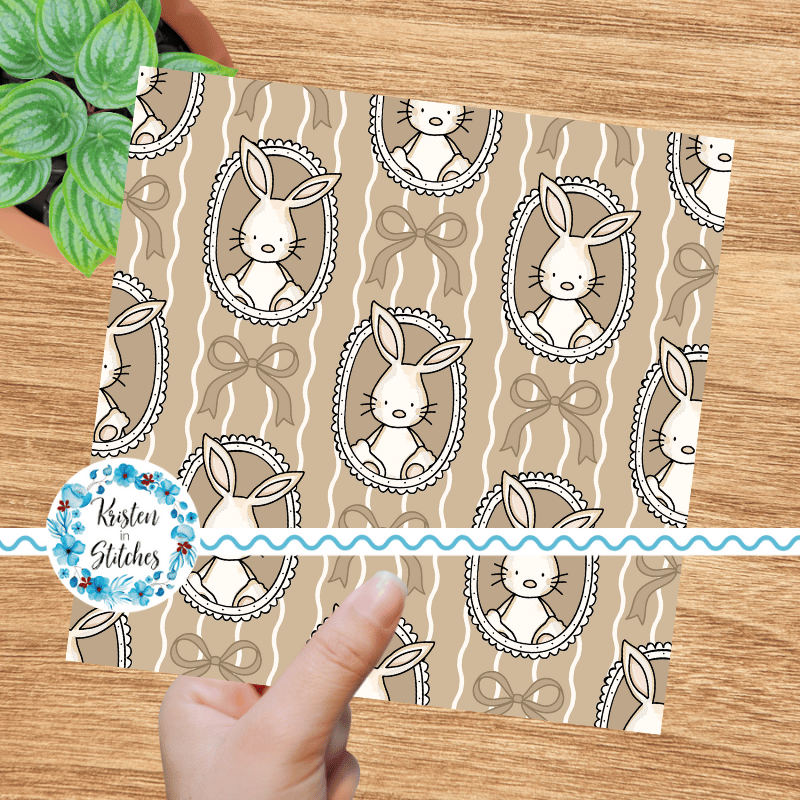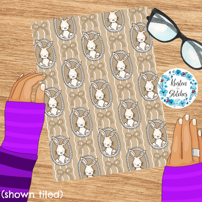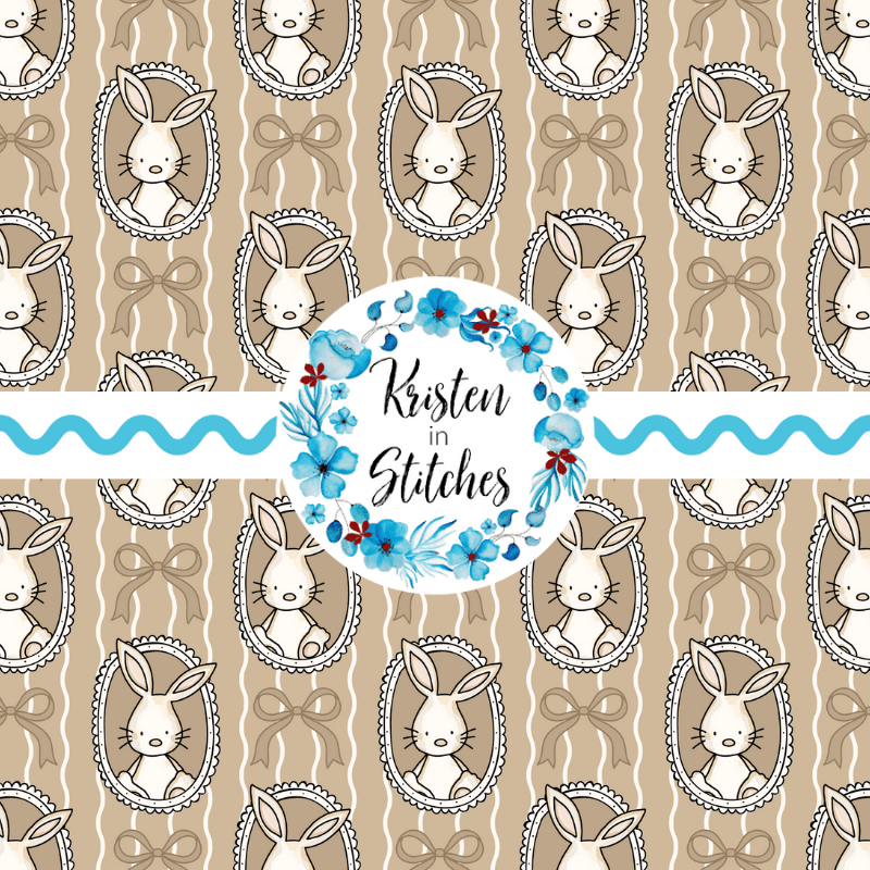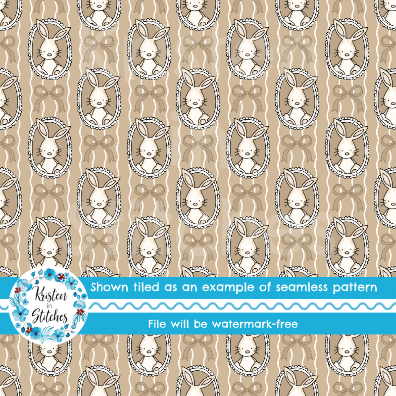 Spring Bunnies and Bows Photo Wall Picture Frames Seamless Pattern, Easter Bunny Rabbits in Tan