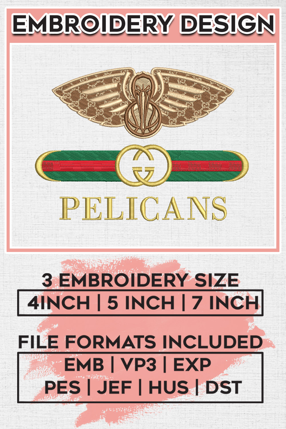 Gu.cci NBA Pelicans Basketball Team Embroidery Files, NBA New Orleans Pelican Team Embroidery Designs, NBA Teams, Machine embroidery Digital Download