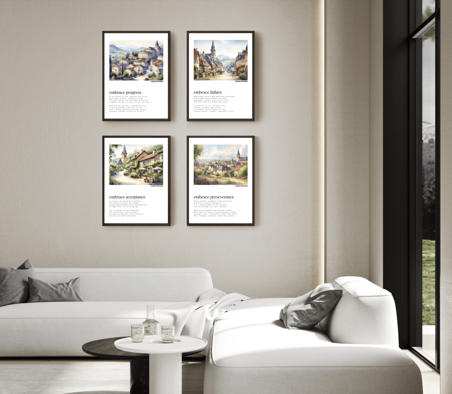Experience the rustic charm of countryside landscapes woven with empowering poetry in our exclusive collection. Picture your space adorned with poetic wisdom that unfolds a narrative of progress, failure, acceptance, and perseverance.