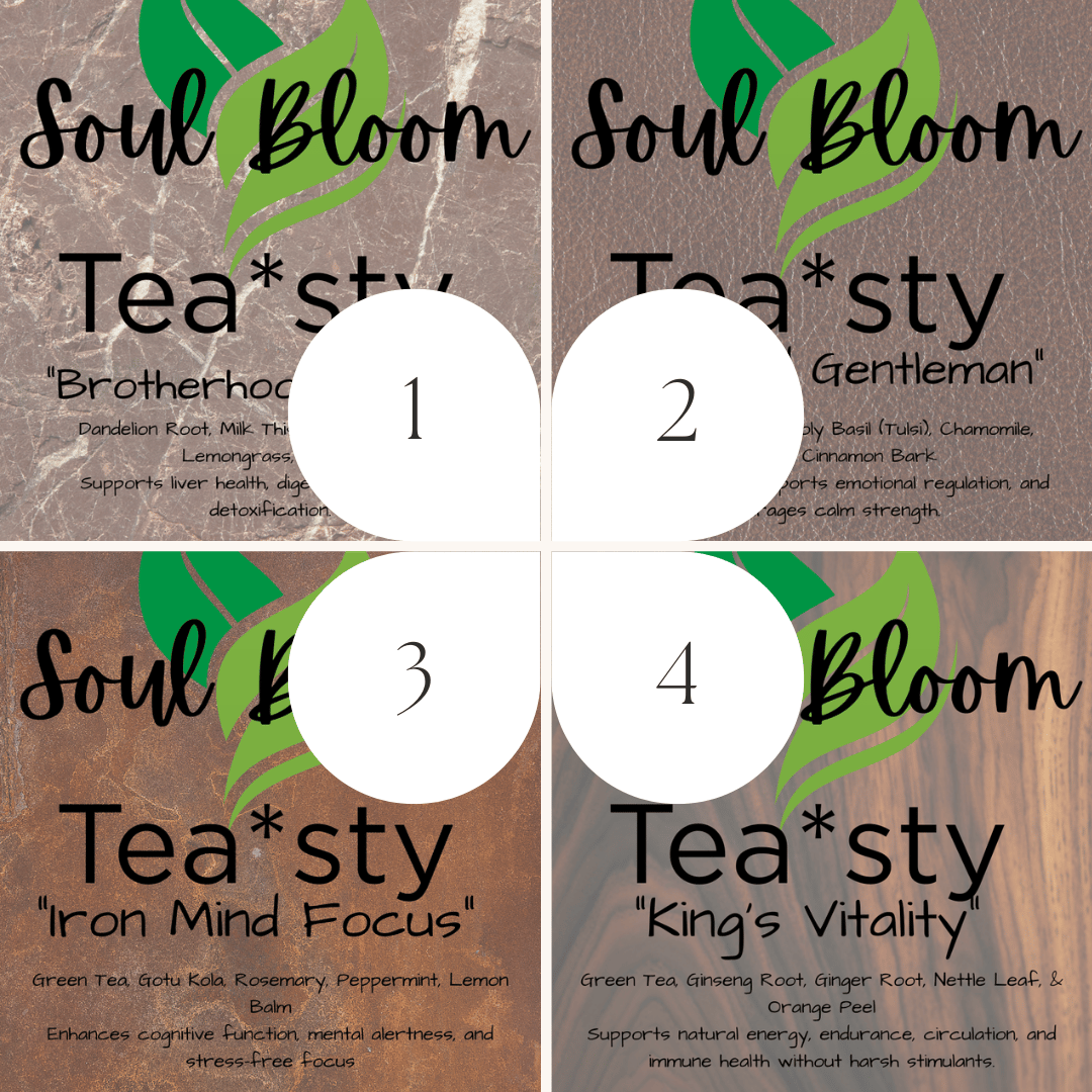 Ingredients:Green Tea (or Yerba Mate), Ginseng Root, Ginger Root, Nettle Leaf, Orange Peel