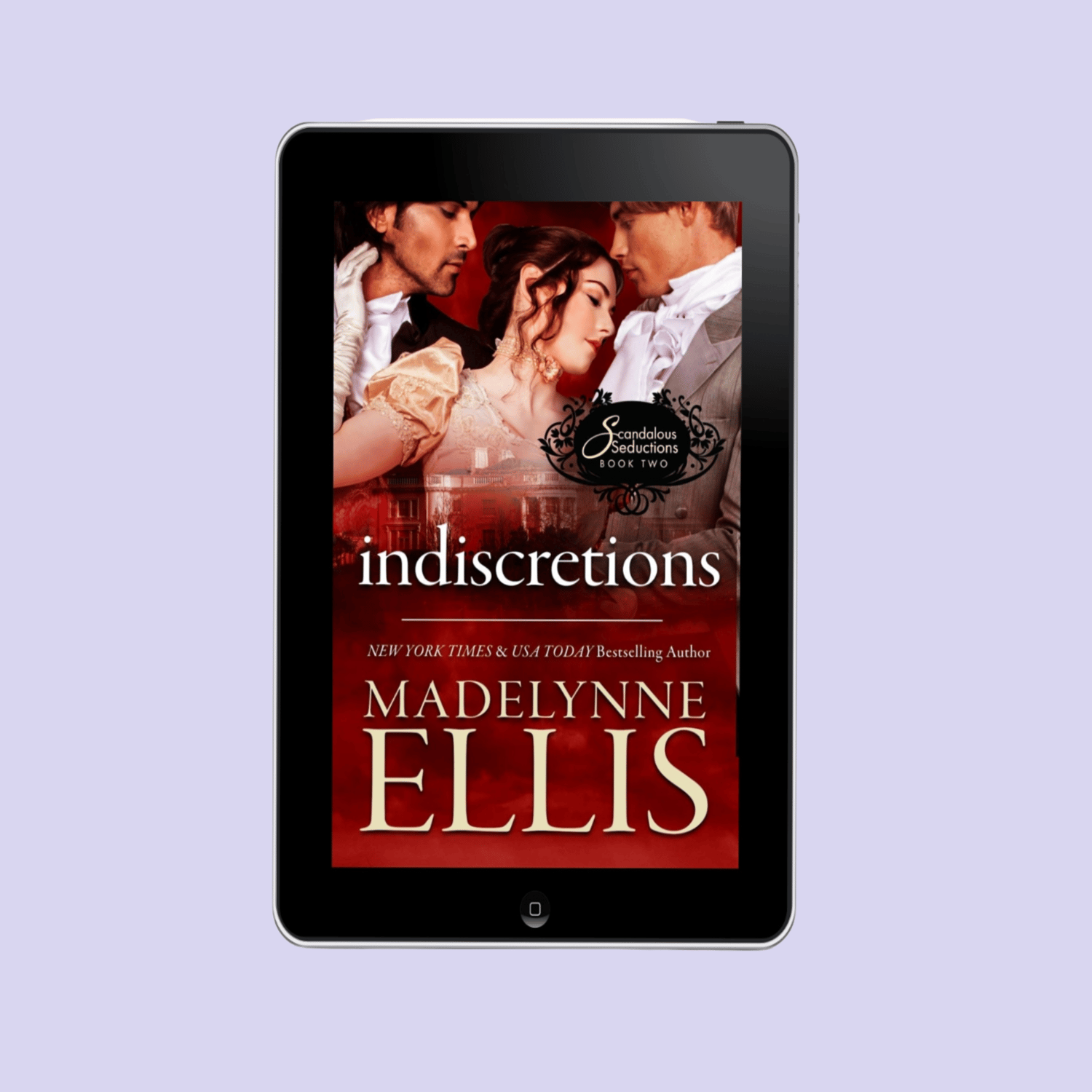 Indiscretions is a Regency-set romance novella with a high heat including M/F, M/M and M/M/F interactions. Expect ribald language, diabolical behaviour, and extreme decadence. You are advised to keep the smelling salts at hand.