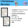 This product includes 5 Christmas stories for ELL/ESL classes which can be used as projects, reading comprehension activities, speaking activities, or assignments. It includes topics such as: Christmas, Christmas activities, friendship, adventures, being a good person, and more!