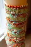 Techniques: Knit in the round, toe up, increases, decreases, bobbles, elongated stitches, heel flap, gusset.