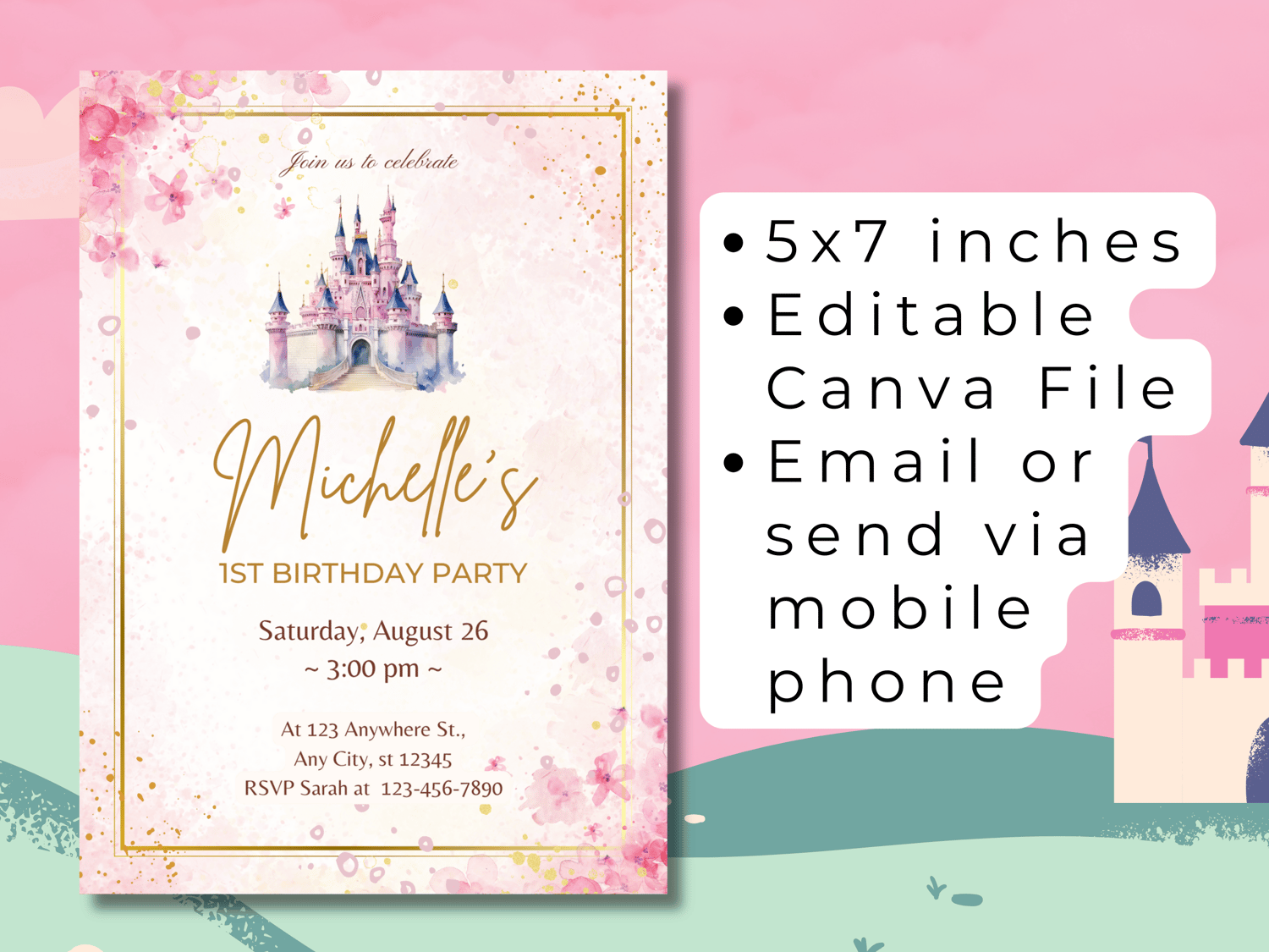 Celebrate your princess birthday with our Princess Castle-themed birthday invitation printable! 👸🏰🎂