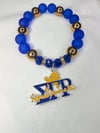 For the Soror who walks in "Luxe Wild" authority. This signature single strand features our soft-touch cobalt matte glass beads paired with heavy-weight gold focal accents. It is a perfect marriage of texture and shine, designed to capture the light and command the room.