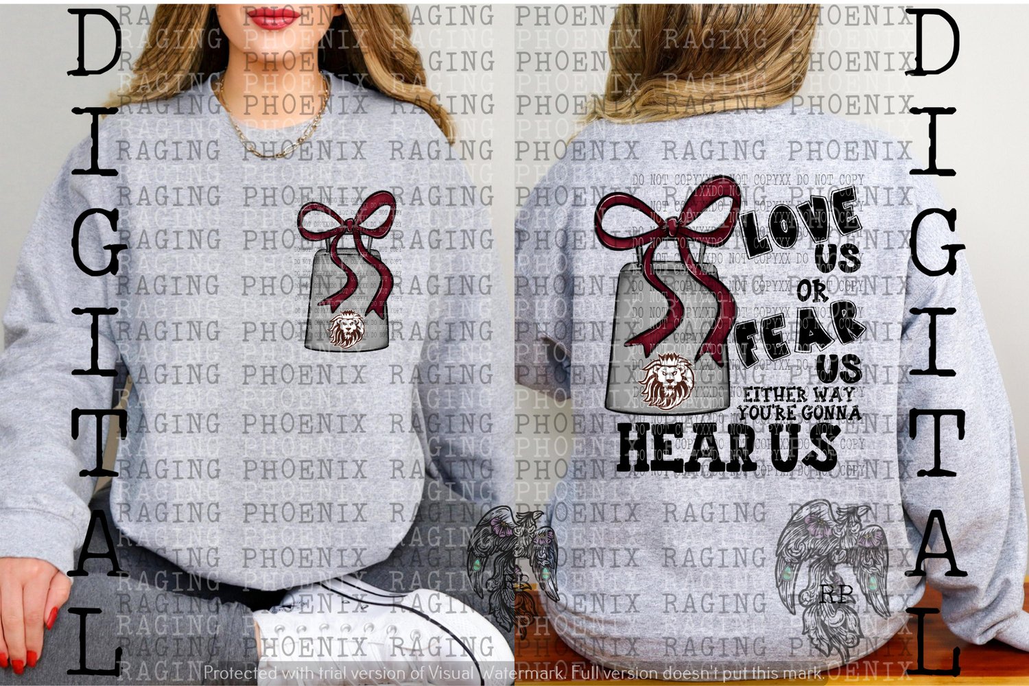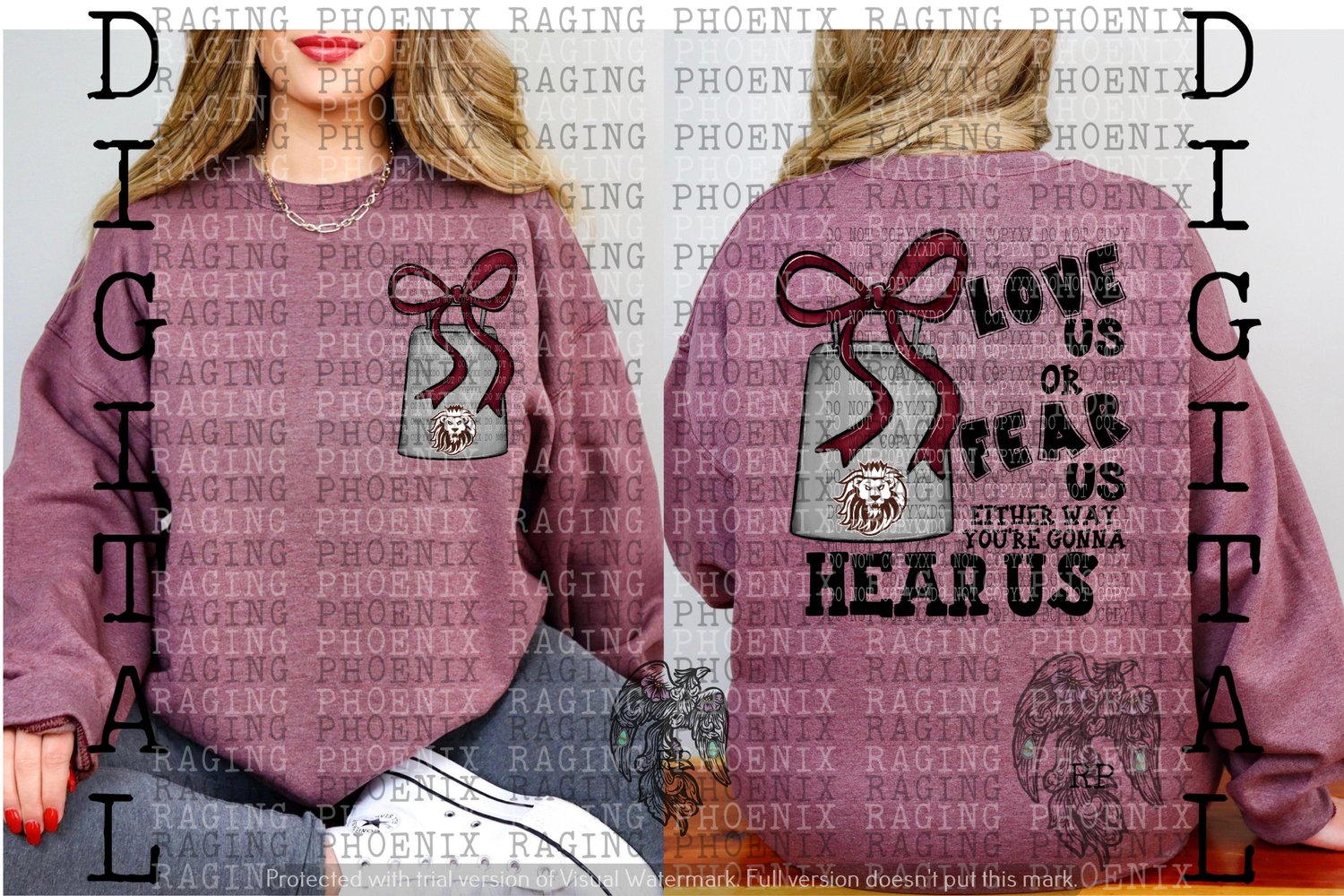 LOVE US FEAR US-COW BELL POOLVILLE MONARCHS MBA40