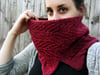 Sizes: S (M) Neckwarmer, shown in size M 23 (26)” / 58.5 (66) cm circumference 10” / 25.5 cm tall