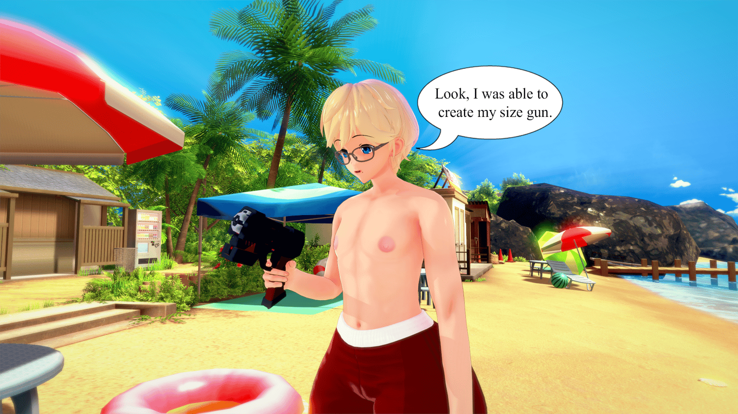 Lana was a rich lady and single mom who lives with her son, Danny, a young guy who is an eccentric scientist that create different kinds of inventions, one day she decided to spend a day alone with her son at their private beach, while Lana was resting, Danny appeared to show her his last creation, a size gun and he proposes to his mom to use it on her to make her a bit taller, nothing would go wrong with that, right?